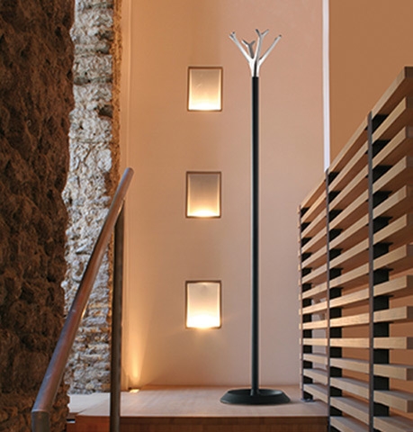 Piantana in tubolare d’acciaio Ø 32 mm, fissata alla base mediante vite M8 in acciaio zincato, verniciata con polveri epossidiche colori nero bucciato, grigio argento o bianco opaco.