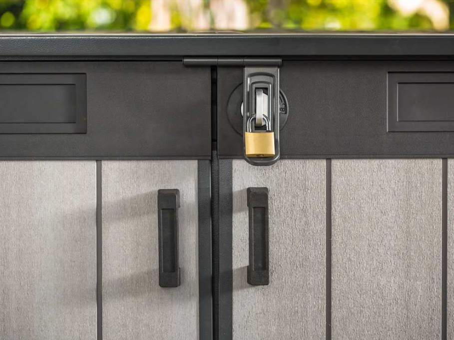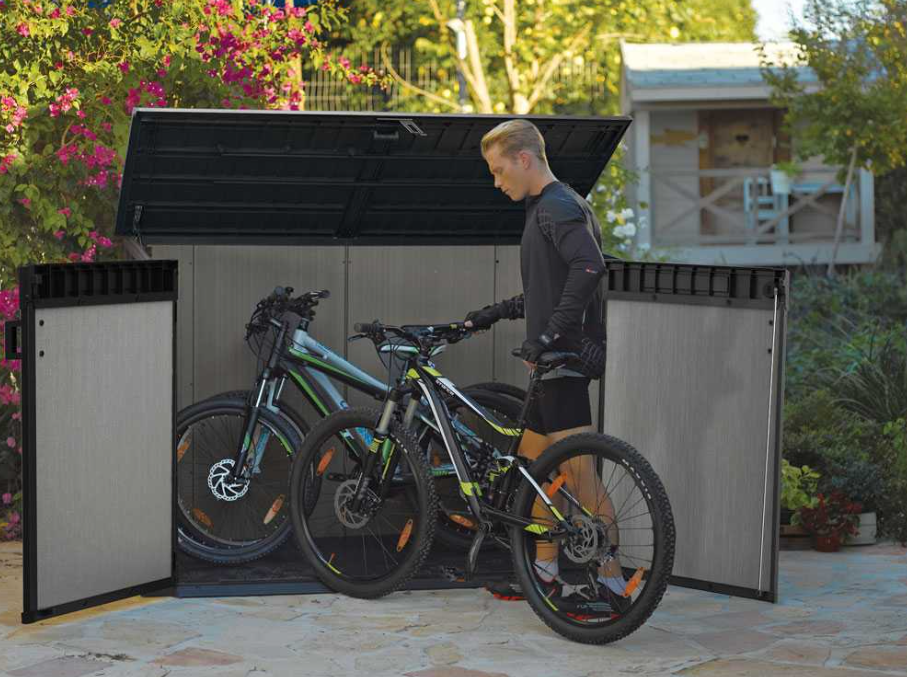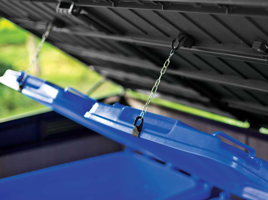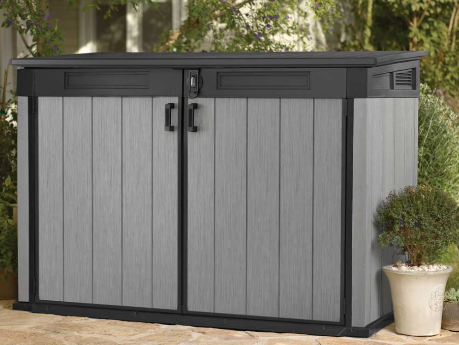 Grazie alla sua struttura robusta in resina effetto legno, è perfetto per riporre bidoni della raccolta differenziata, attrezzi da giardino, barbecue, mobili da esterno o biciclette, proteggendoli da pioggia, sole e umidità.