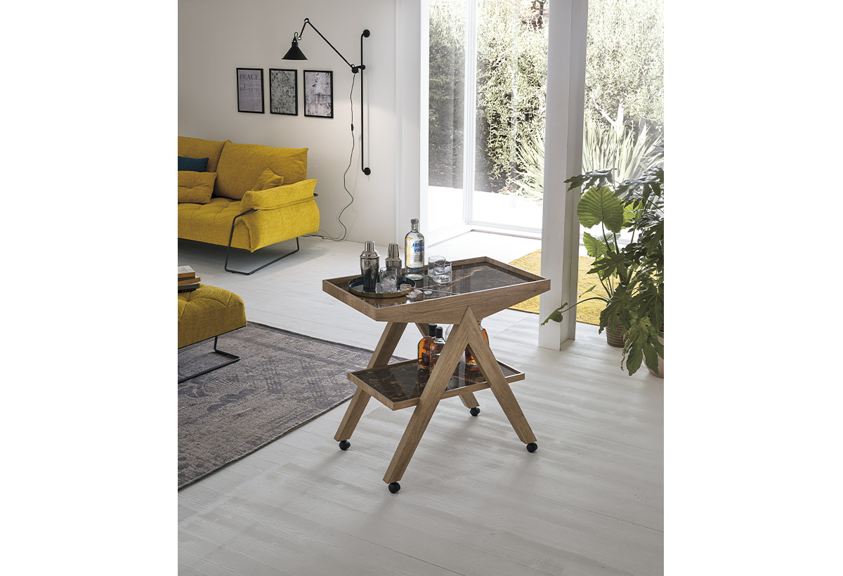 È l’ideale per il soggiorno, dove può fungere da elegante supporto per servire drink e snack durante una serata con ospiti, oppure può essere utilizzato come pratico piano d'appoggio per accessori decorativi, libri o riviste.