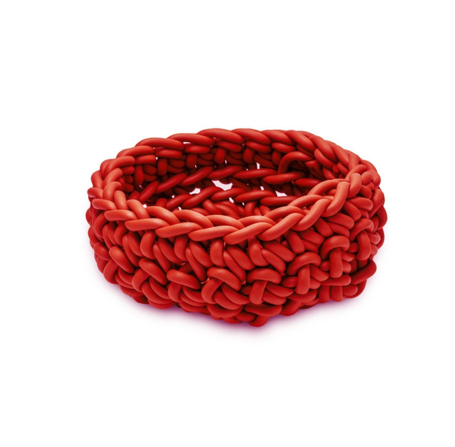 Il Cesto Classico è lavorato a mano all’uncinetto con filo di neoprene sottile, che conferisce una struttura compatta ma morbida.