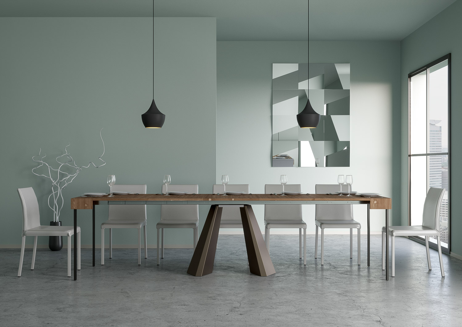 Consolle allungabile Diamante, versatile e robusta, un complemento perfetto per ogni ambiente della casa: ingresso, cucina, sala da pranzo, soggiorno o corridoio. La consolle allungabile Diamante può essere facilmente trasformata in un ampio tavolo da pranzo lungo fino a 300 cm, in grado di ospitare 14 persone. Realizzata con pannelli in nobilitato, gambe in ferro. Il sistema di allunghe con guide telescopiche in alluminio e i sostegni laterali in dotazione rendono la consolle stabile e robusta. Una volta che la consolle è chiusa, le allunghe devono essere riposte altrove. Prodotto Itamoby Made in Italy Dimensioni: Consolle chiusa: L.90 P.40 H.77 cm Lunghezza con 1 allunga: 92 cm Lunghezza con 2 allunghe: 144 cm Lunghezza con 3 allunghe: 196 cm Lunghezza con 4 allunghe: 248 cm Lunghezza con 5 allunghe: 300 cm