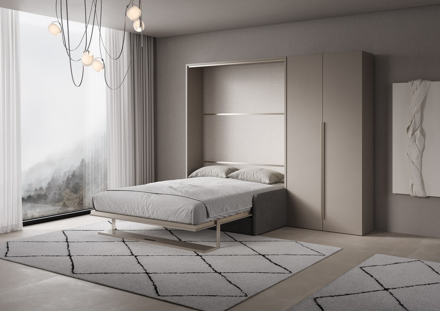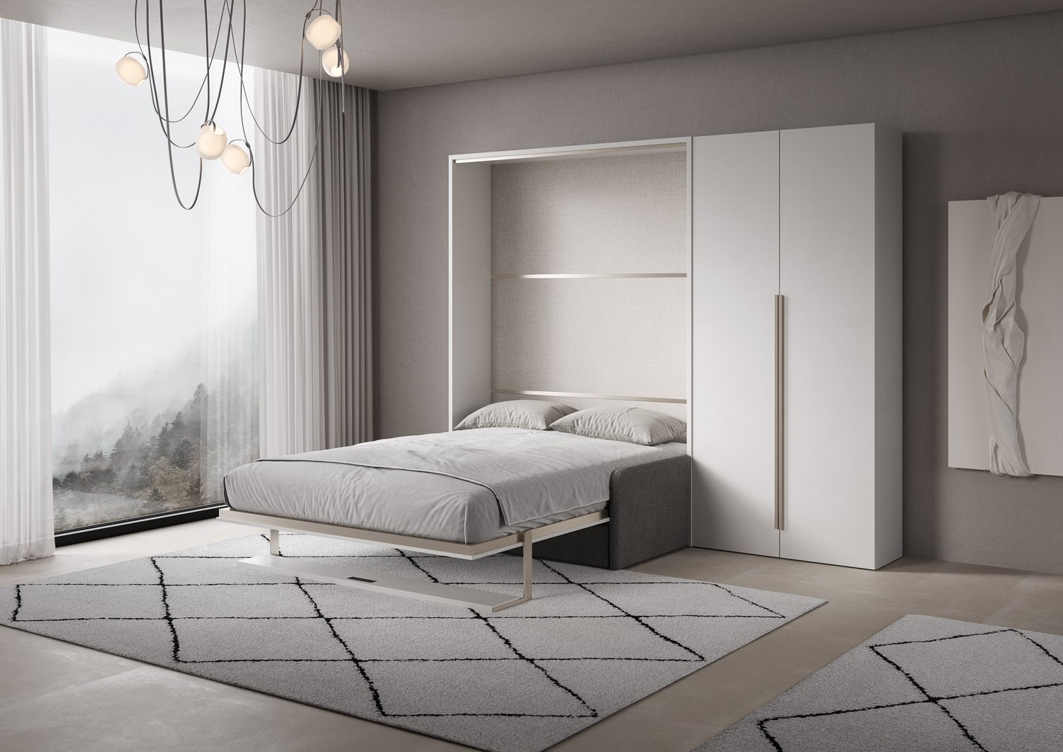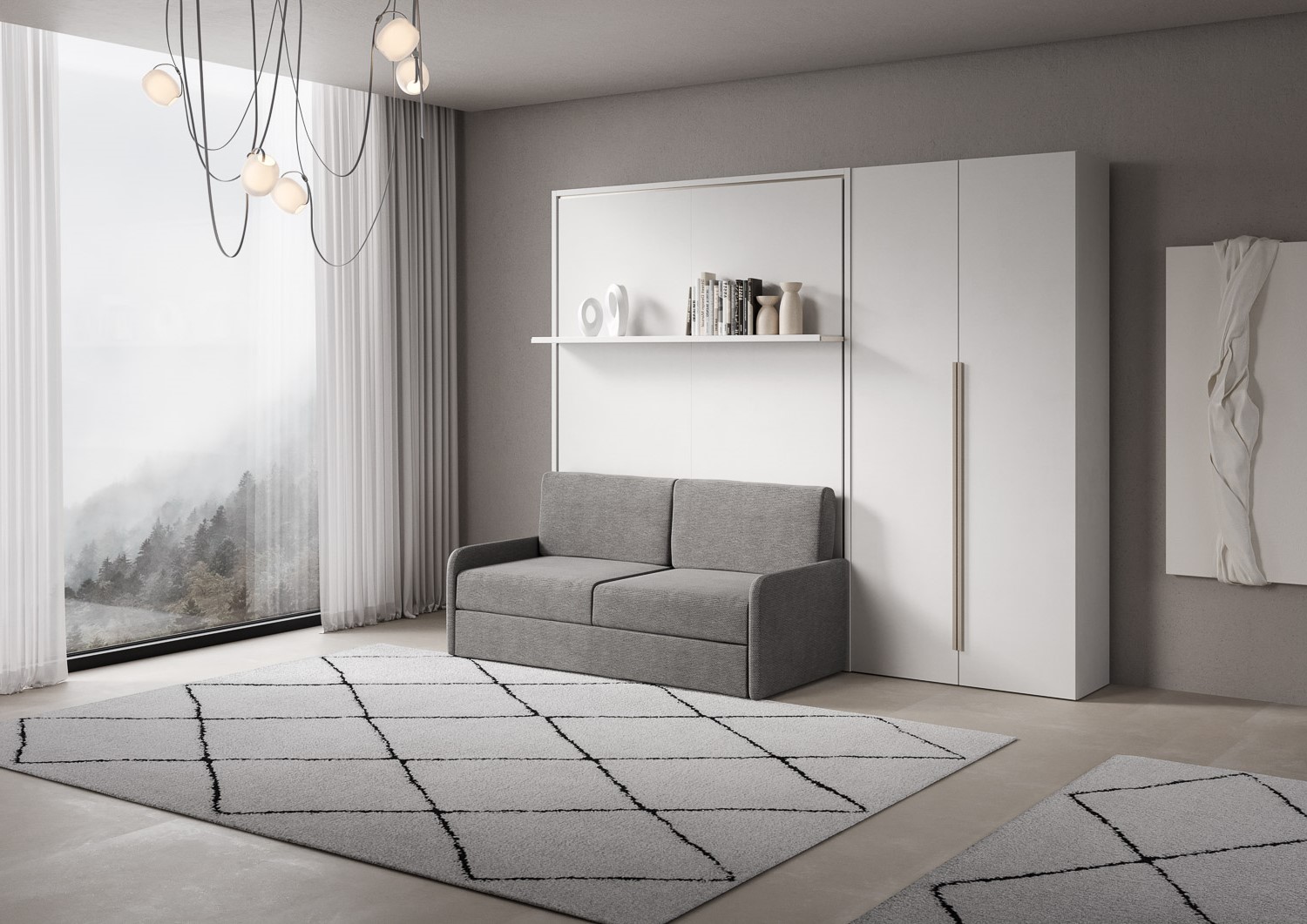 | Materiál | Dvojstěnná postel Versia Sofà s integrovanou pohovkou a policí nově vynalézá koncept prostoru. Elegance, funkčnost a design se snoubí ve Versia Sofà, dvojité posteli, která promění obývací pokoj ve skutečně jedinečný prostor. |