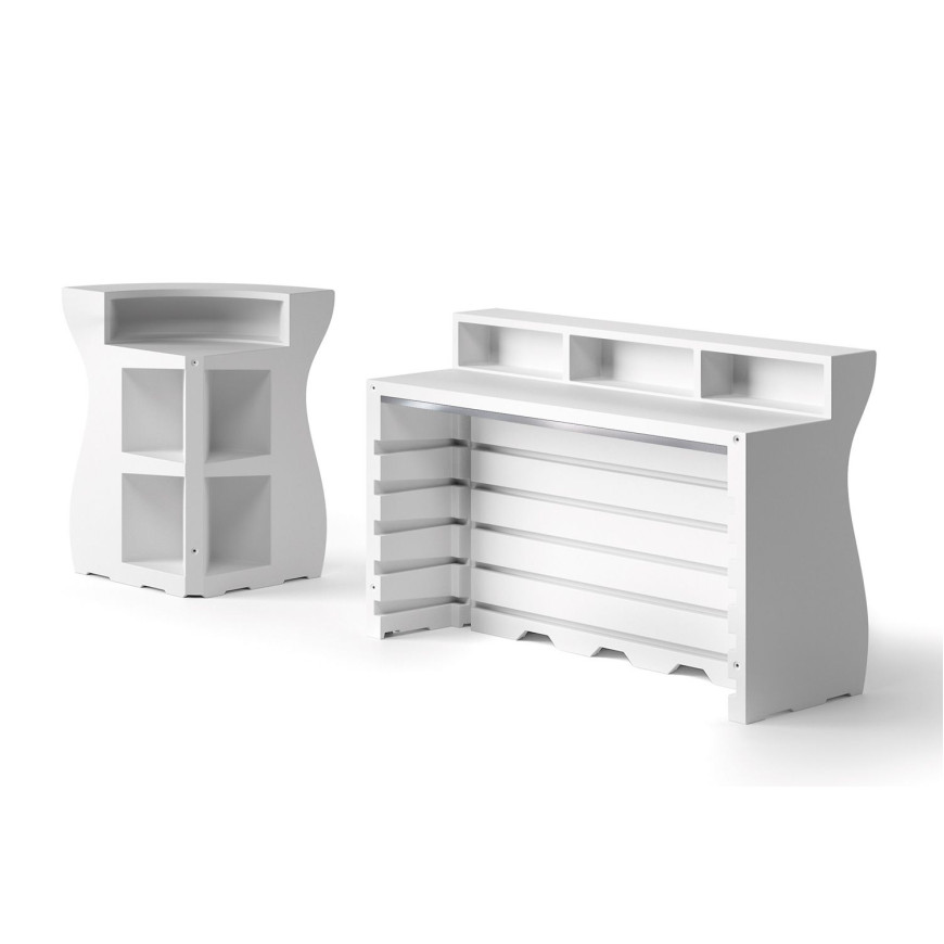 Jeho modulární struktura umožňuje nekonečné kombinace: můžete vytvořit recepční stanice , lineární pulty nebo elegantní vysoký pultík pro rauty a akce .