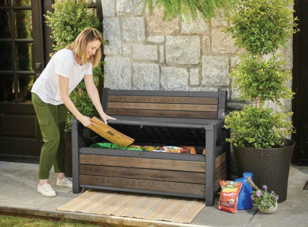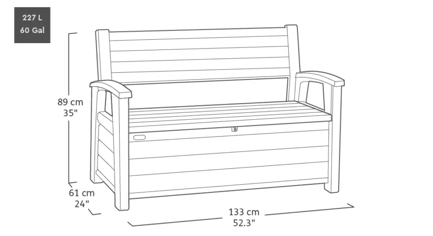 Kromě pohodlného sezení pro dvě osoby má integrovaný úložný prostor o objemu 227 litrů , který je ideální pro uspořádané a chráněné uložení polštářů, her nebo zahradního příslušenství.