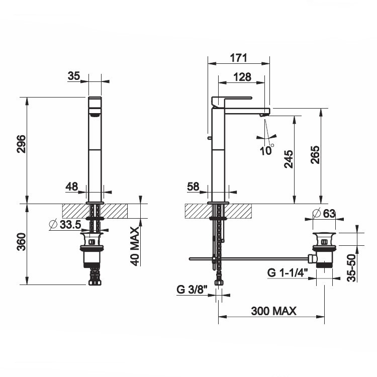 Horní páková umyvadlová baterie s odtokem.