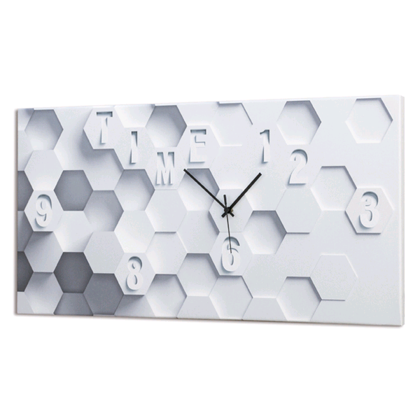 Nástěnné hodiny s mnoha šestiúhelníky.