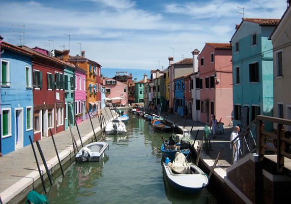 Dřevěné kukačkové hodiny. Design a barvy připomínají domy na Buranu, slavném ostrově v Benátské laguně. Quartzový strojek napájený baterií. Světlocitlivý senzor automaticky zastaví zvonění při nedostatku světla.