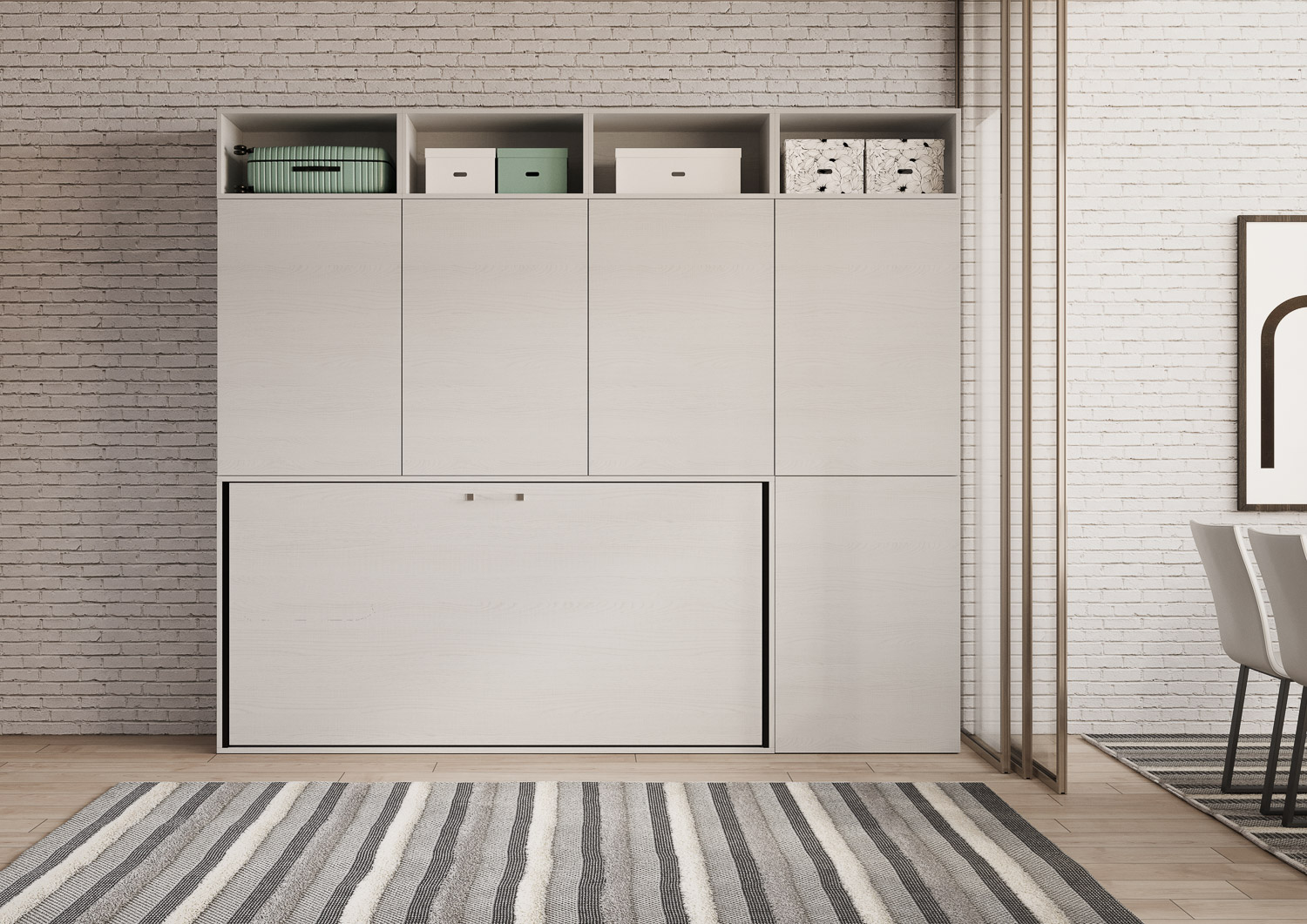| Materiál | Kando B je inovativní řešení pro vybavení malých prostor. Jedná se o jednolůžko integrované do knihovny/skříně s devíti přihrádkami (pět s dvířky, každá s vnitřní policí a čtyři otevřené přihrádky). Tímto způsobem můžete maximálně využít svůj prostor. |