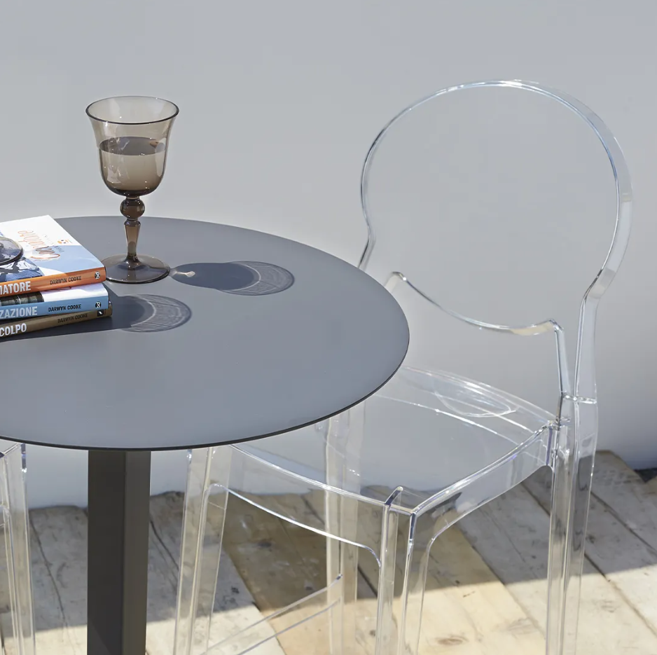 Židle Igloo je vyrobena z recyklovatelného polykarbonátu, odolného a lehkého materiálu vhodného pro vnitřní i venkovní použití.