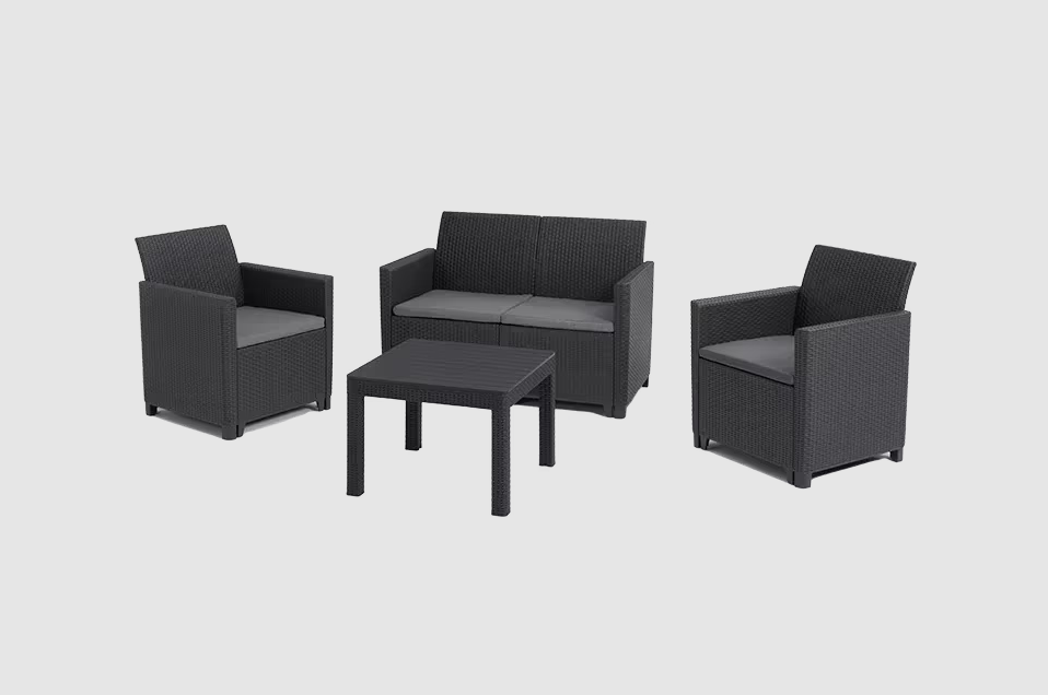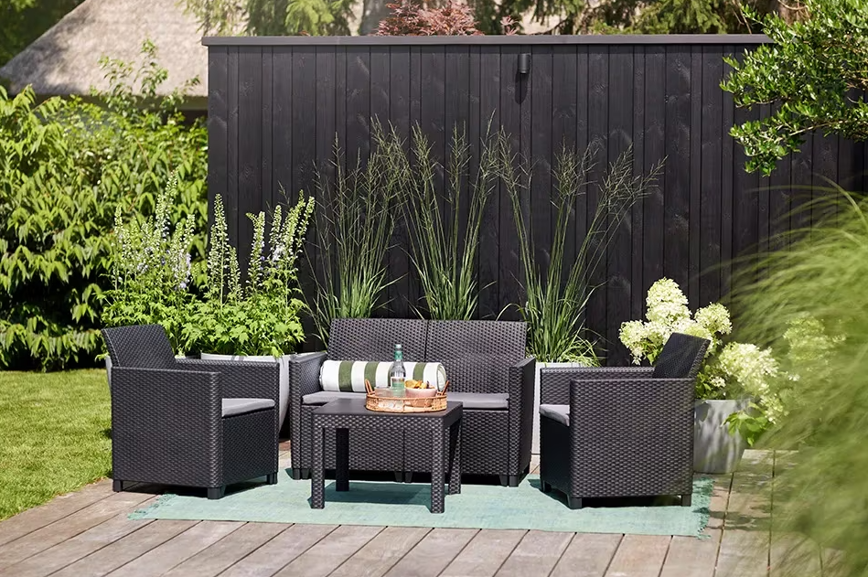 Zahradní sestava Marie od značky Keter se skládá z pohovky, křesel a konferenčního stolku s ratanovým efektem a je vetkaná do vysoce odolné pryskyřice.