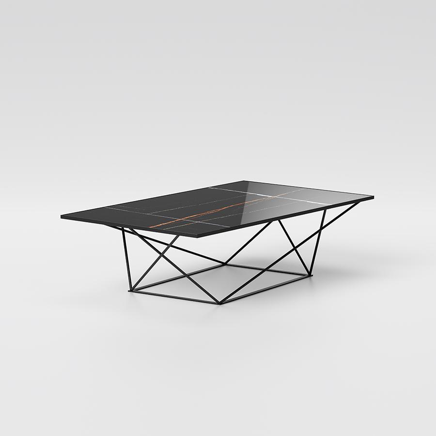 Elegantní a rafinovaný design konferenčního stolku se harmonicky snoubí s jeho lehkou konstrukcí a sofistikovaným sklem, které může být kované nebo digitálně zdobené mramorovým efektem.