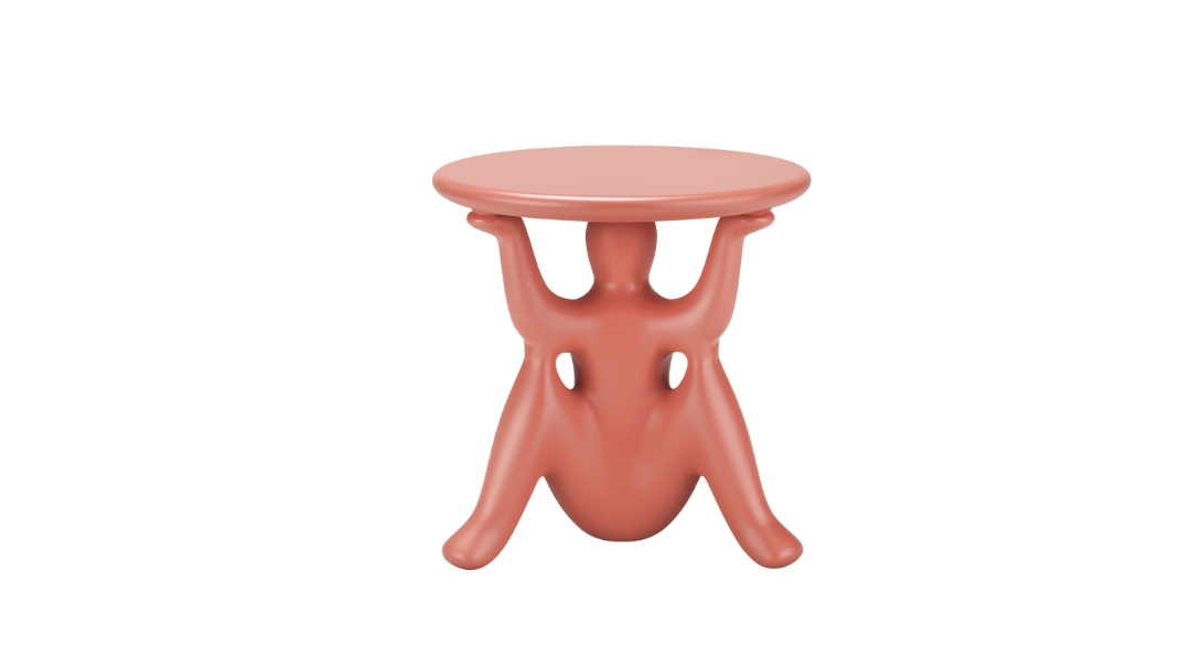 HelpYourSelf je kolekce stolů navržená Philippem Starckem pro Qeeboo, kde fantastickí géniové s ironií a stylem podtrhují kulatou desku.