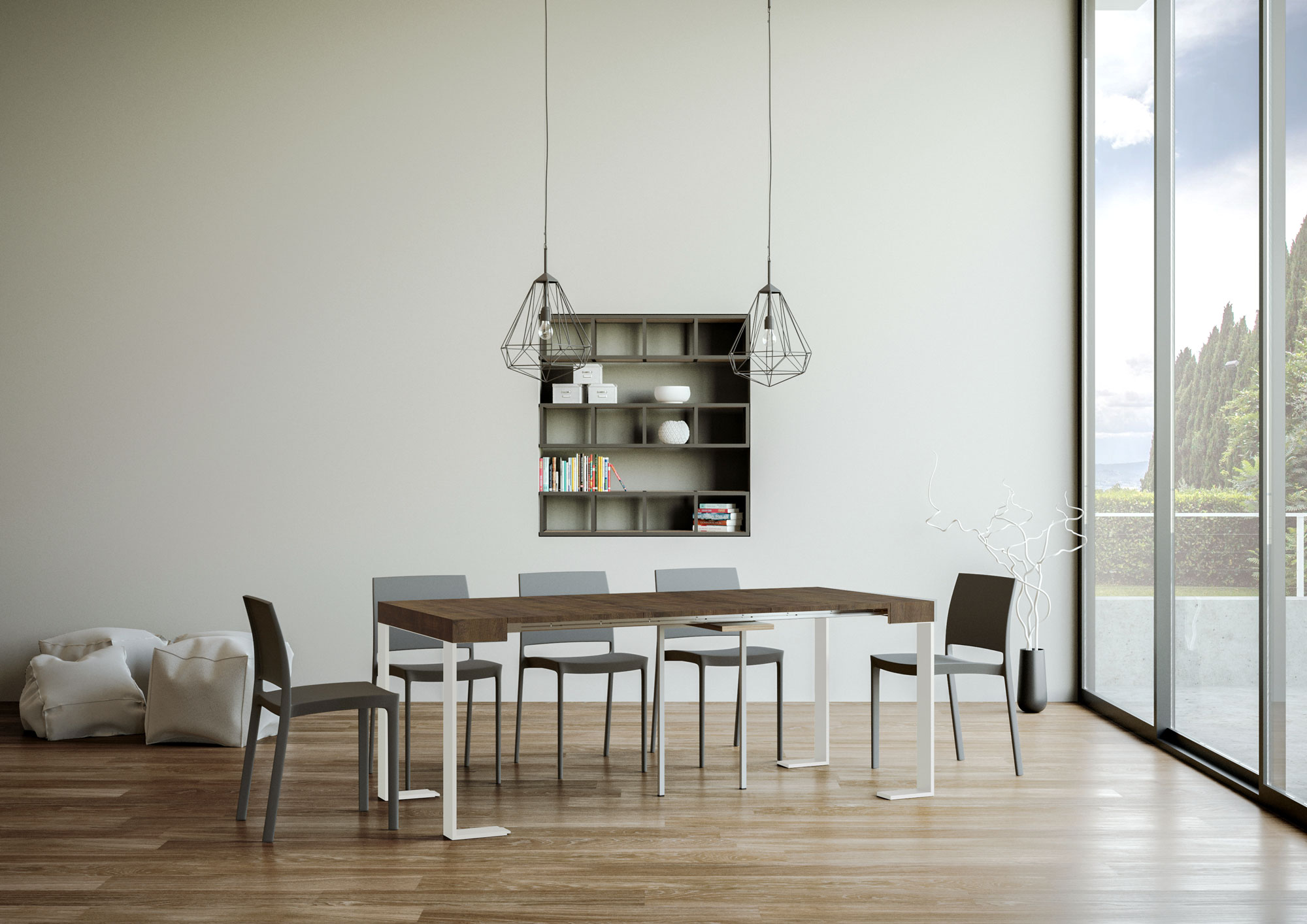 Železná konstrukce a dřevěná deska opracovaná technologií Folding dělají konzolový stolek skutečně stabilní a robustní.