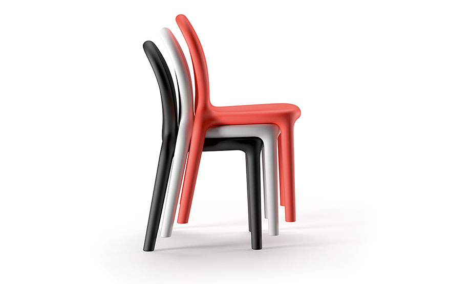 Pohodlná židle s liniemi inspirovanými neoklasicistním uměním. Sedák z rotačně lisovaného PE umožňuje vytvářet křivkové tvary s minimální tloušťkou. K dispozici v různých barvách, je vhodná pro vnitřní i venkovní použití.