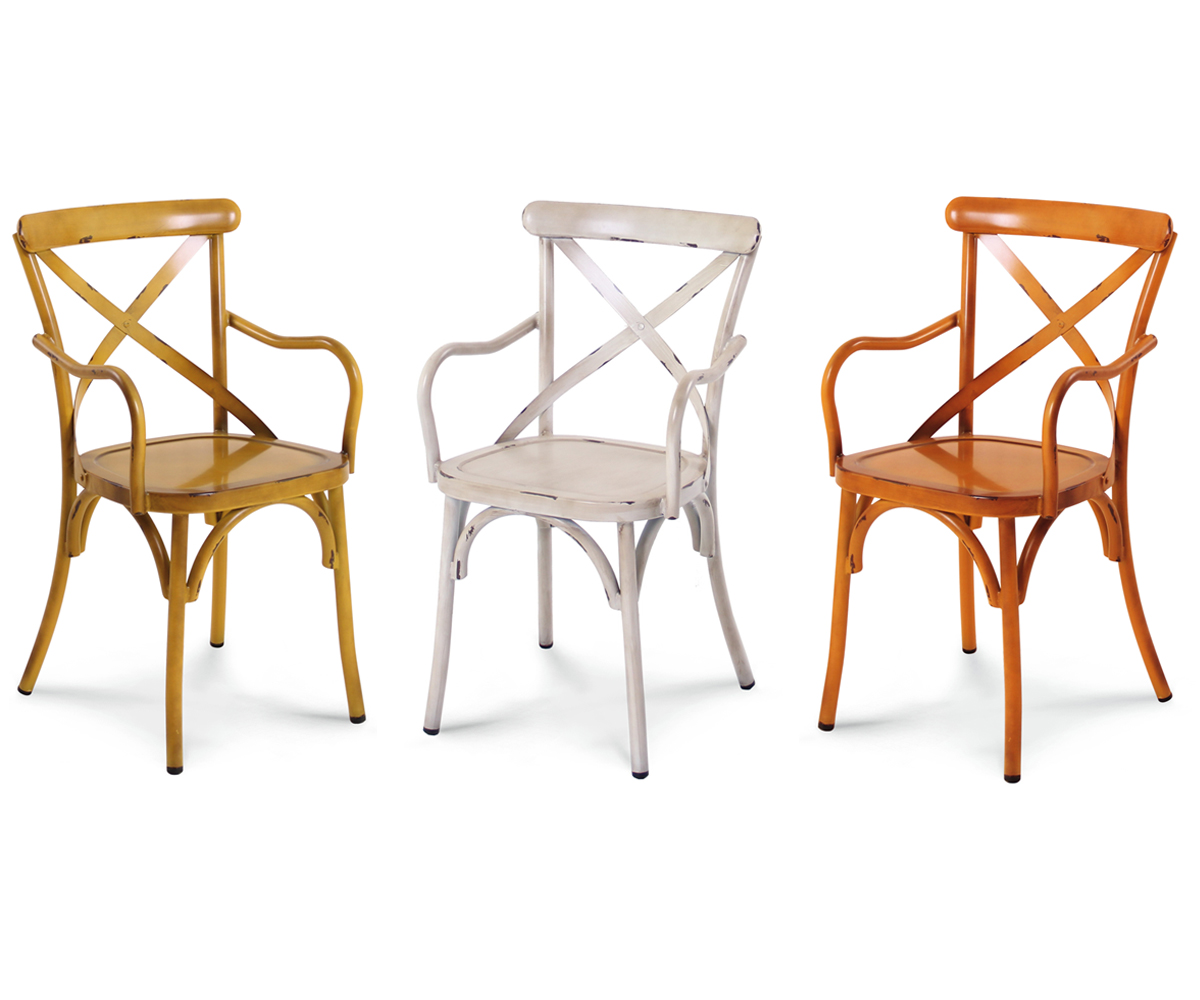 Křeslo s lakovaným kovovým rámem s efektem opotřebovaného vintage.