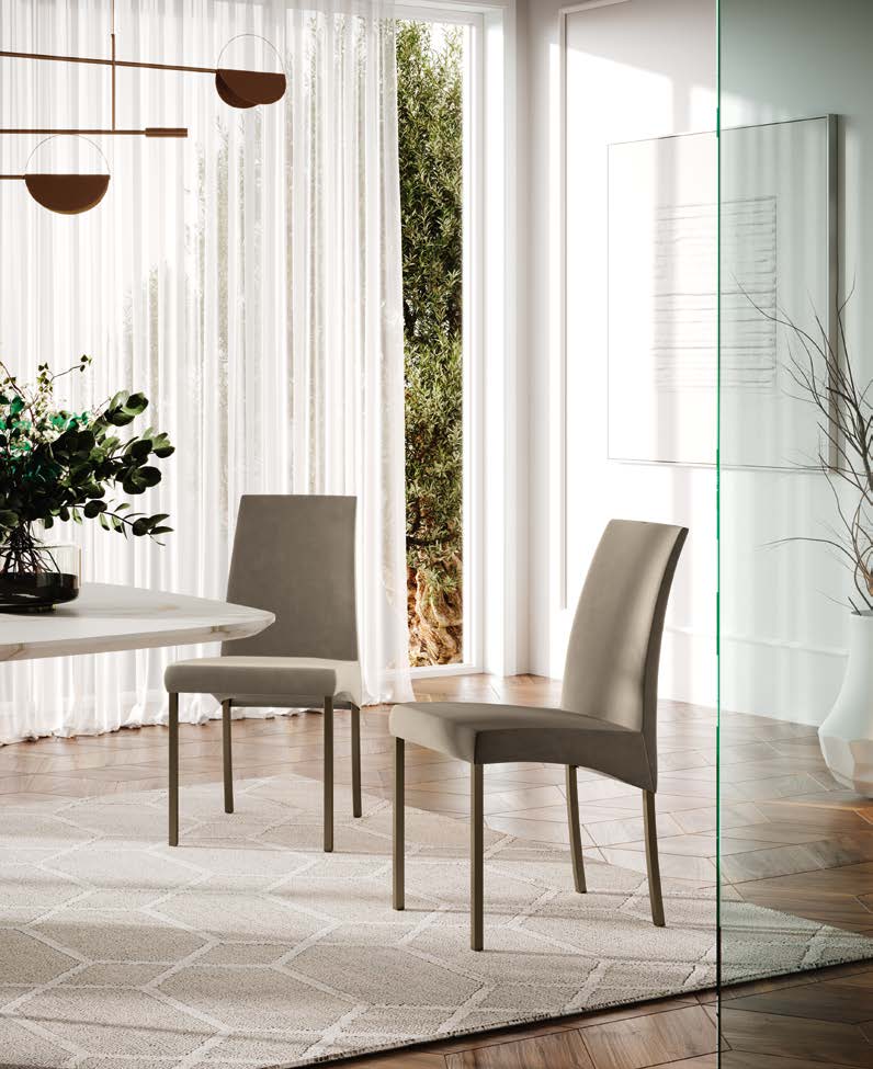 Objevte židli Elias, elegantní kus nábytku, který kombinuje moderní design a maximální pohodlí. Tato židle s rámem z lakované oceli má polstrovaný sedák a opěradlo čalouněné širokou škálou prémiových materiálů.