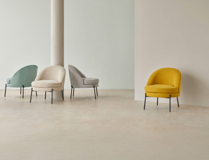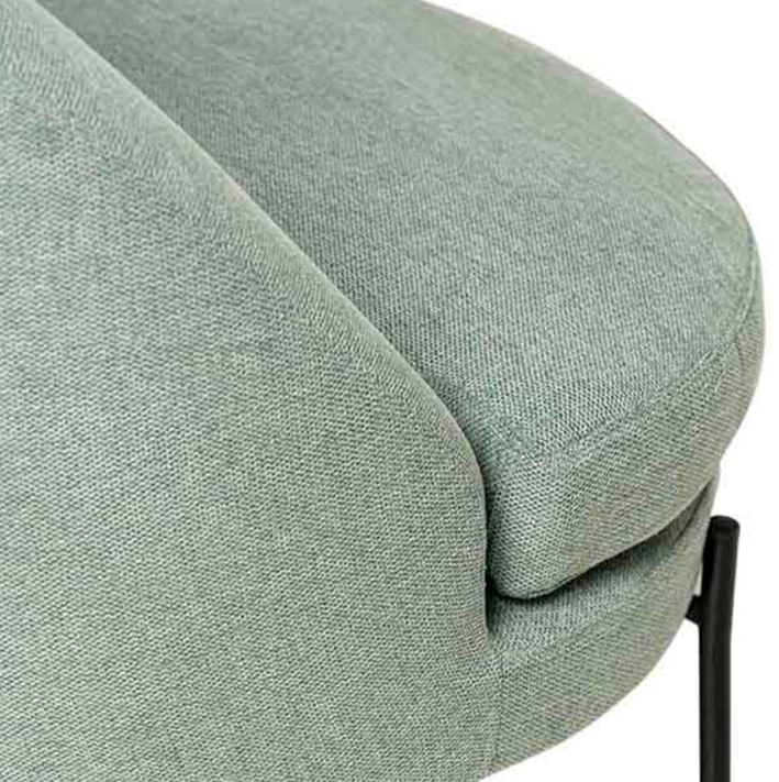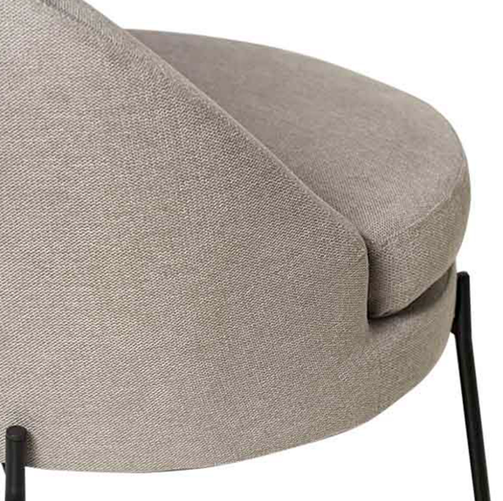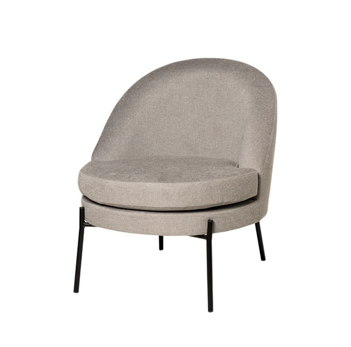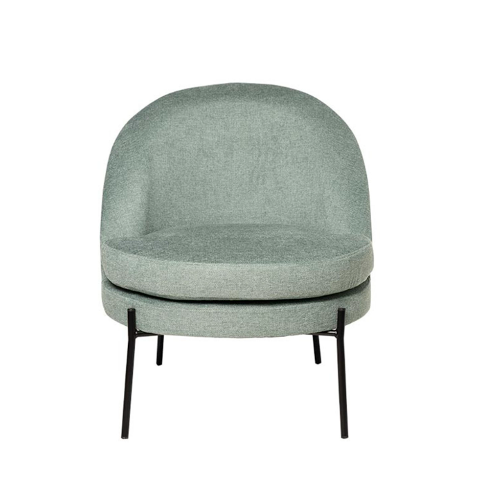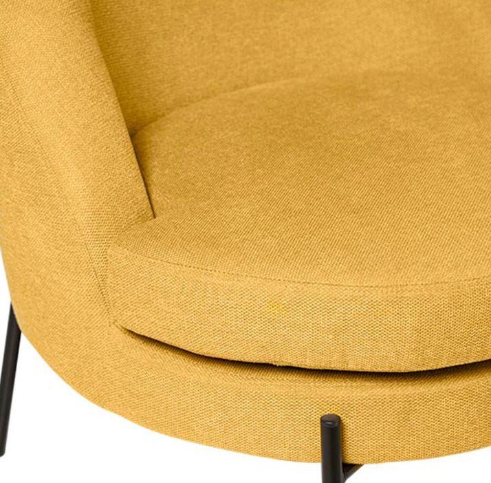 Tenké černé kovové nohy vytvářejí elegantní kontrast s čalouněním a dodávají křeslu moderní a sofistikovaný nádech.