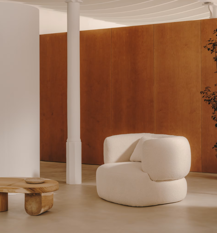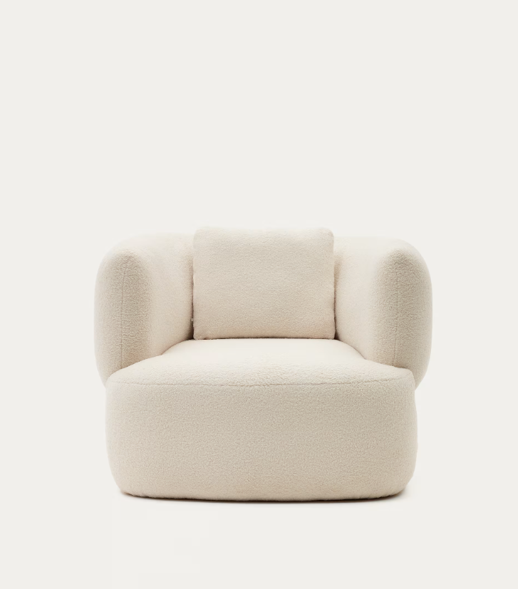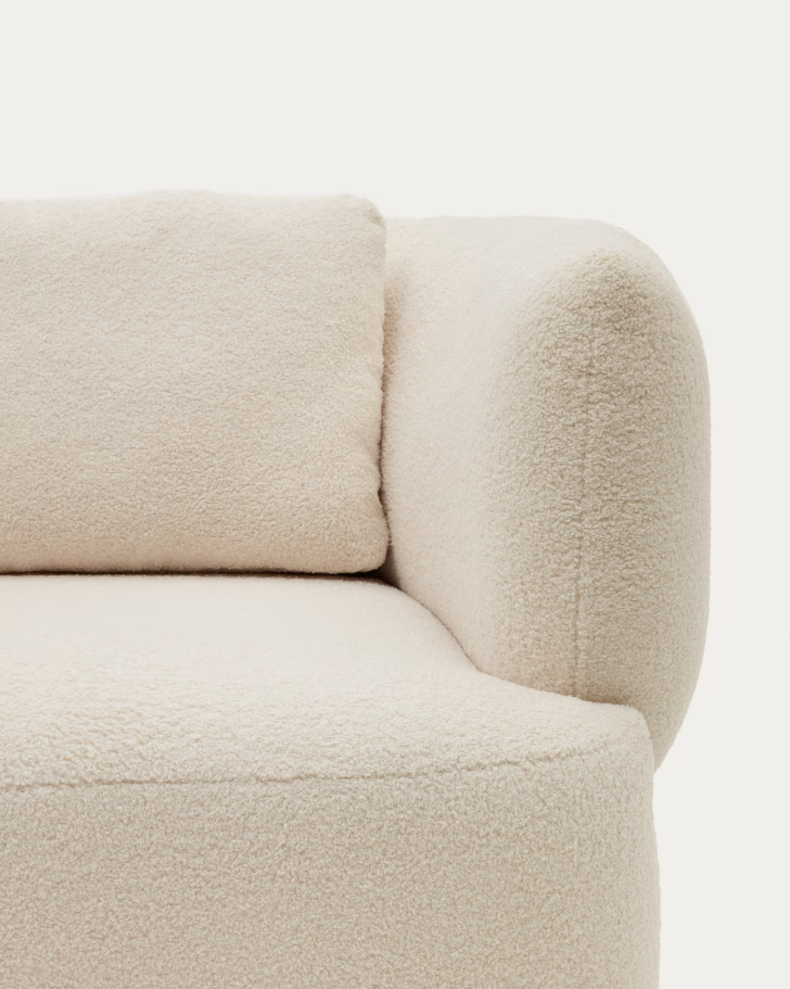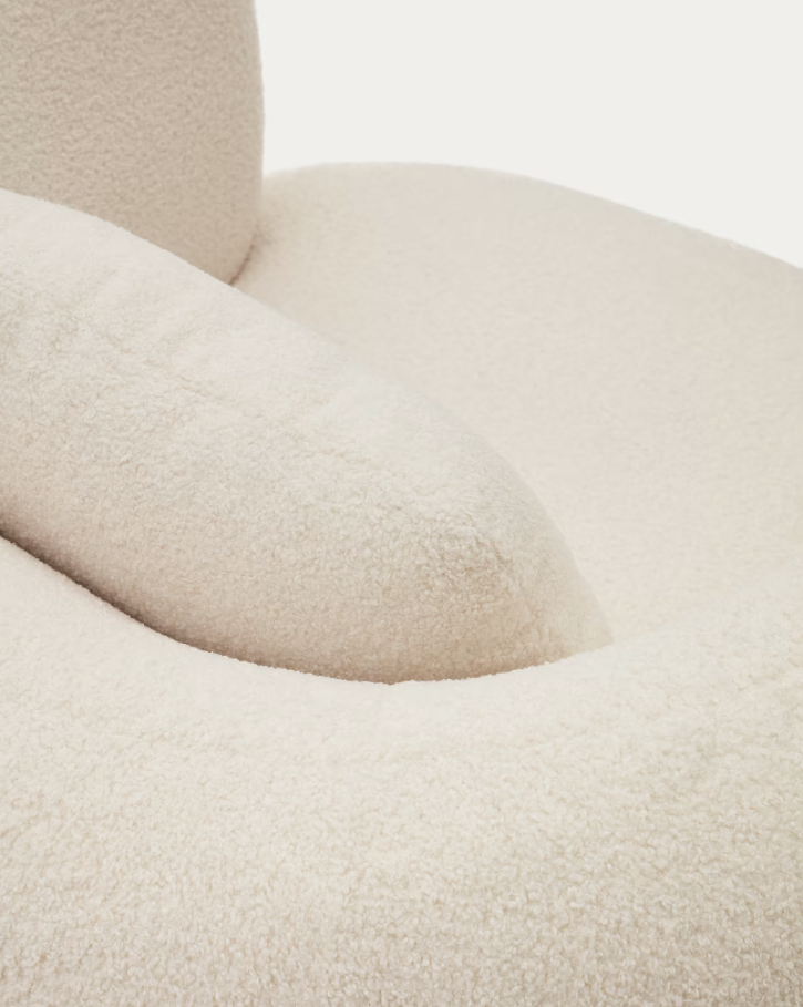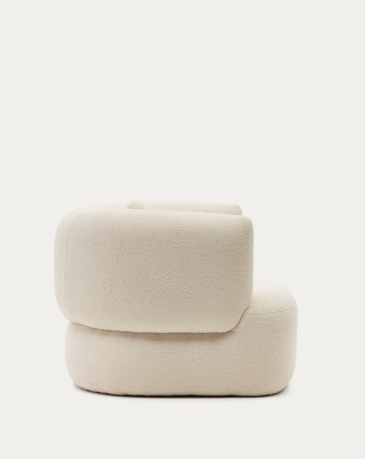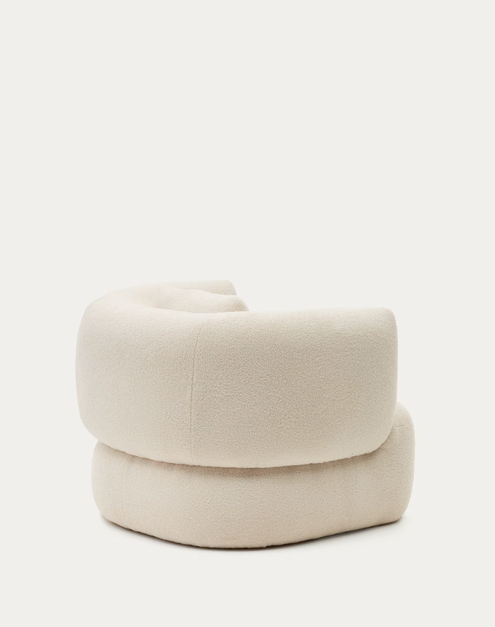 Tým Kave Home vytvořil křeslo Martina pro relaxaci a ochranu planety. Jeho zakřivené linie a podšívka ze 100% recyklovaného polyesteru s efektem jehněčí kůže z něj činí perfektní kousek do vašeho obývacího pokoje.