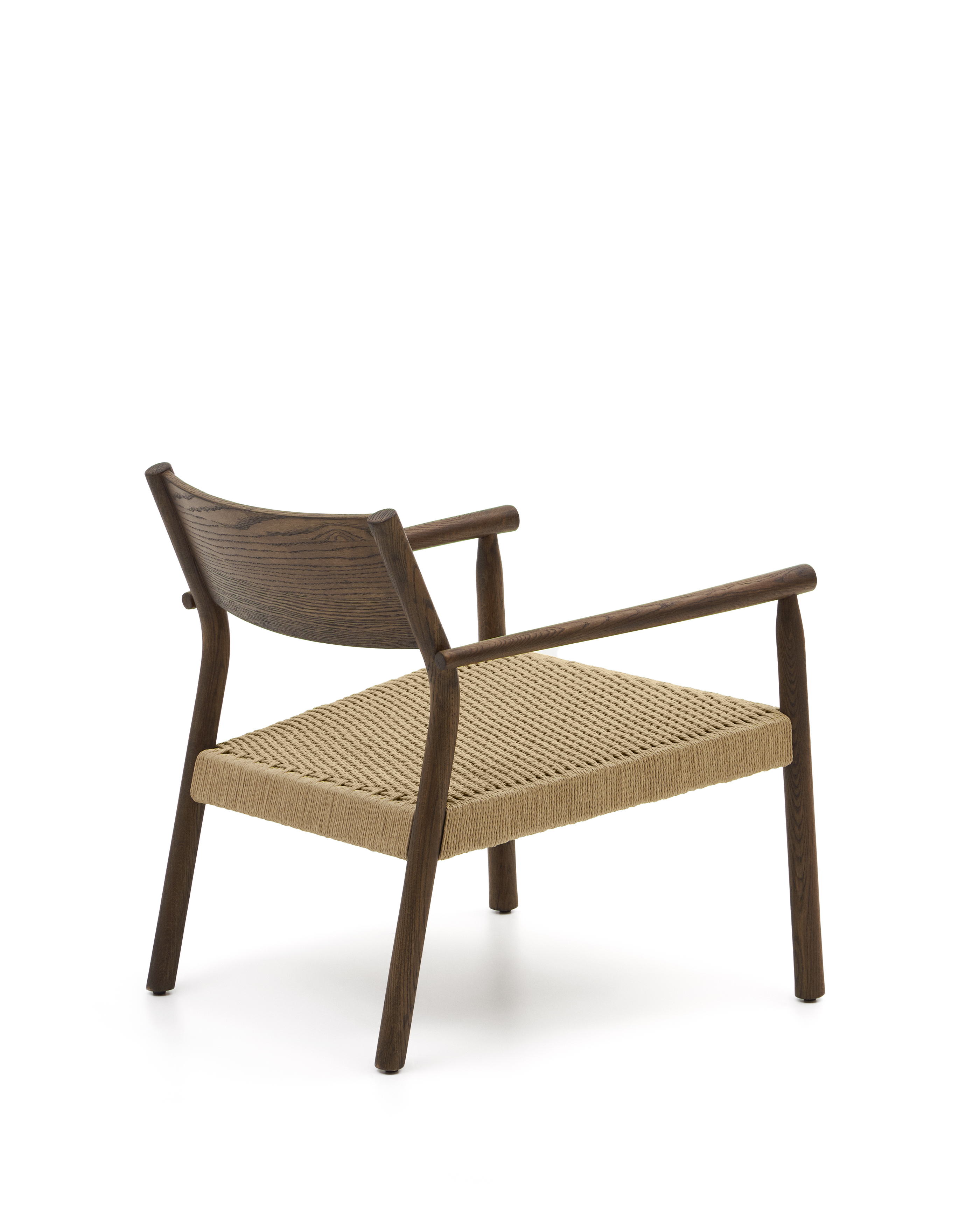 Křeslo Yalia z masivního dubového dřeva FSC 100% s ořechovou povrchovou úpravou a sedákem z papírové šňůry