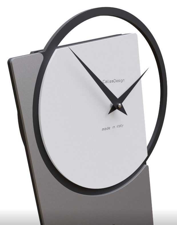 Vyrobeno z dřevovláknité desky s matnou povrchovou úpravou. Barevně sladěné kovové ručičky. Ručně vyrobené v Itálii, vybaveno německým křemenným kyvadlovým mechanismem, který zaručuje spolehlivost. K dispozici v různých barvách, je ideální do kuchyně, obývacího pokoje nebo pracovny.