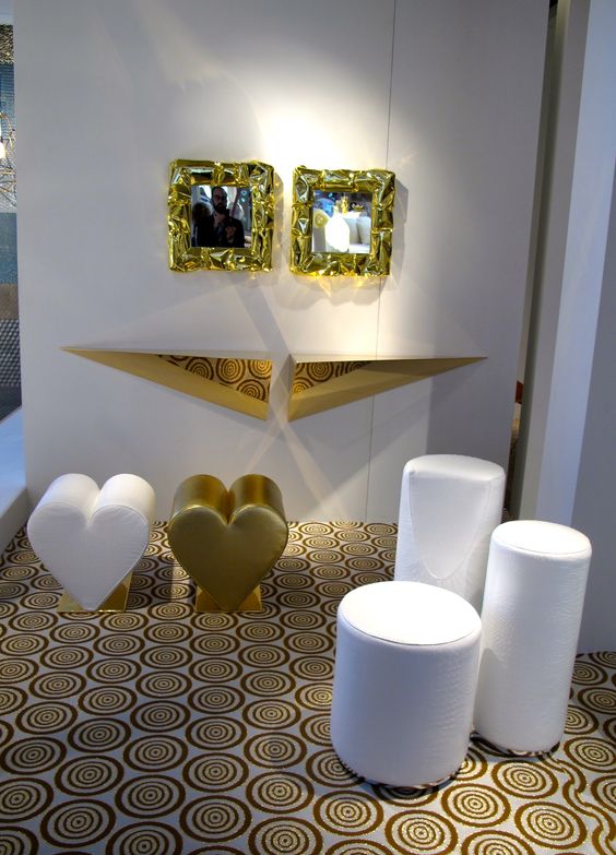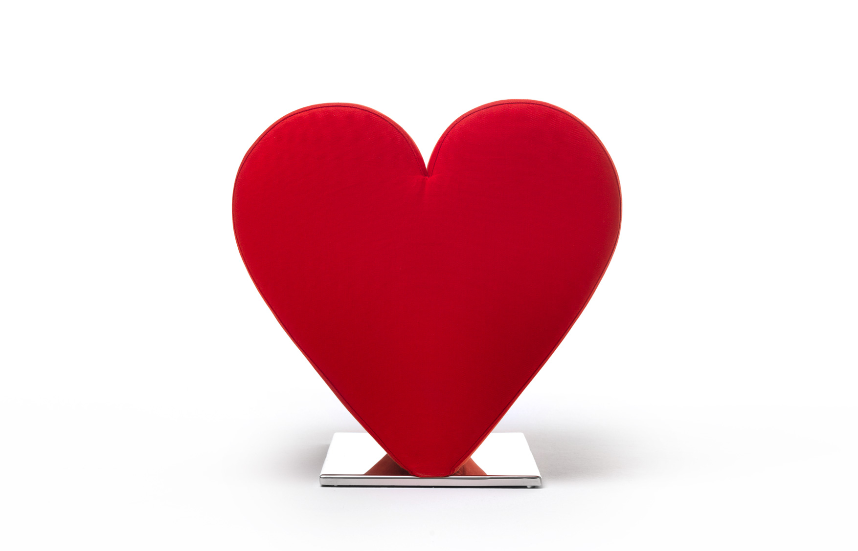 Ikonický sedák z polyuretanové pěny čalouněný 100% bavlnou. Podnoží z leštěné nerezové oceli. Toto emotivní křeslo s profilem ve tvaru srdce je barevný a originální kus nábytku, který vytvoří romantickou atmosféru v každém prostoru.