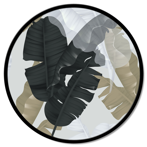 Kulatý panel z dřevěných vláken potažený čistým bavlněným plátnem s potiskem ve vysokém rozlišení a s matně lakovaným kovovým rámem.