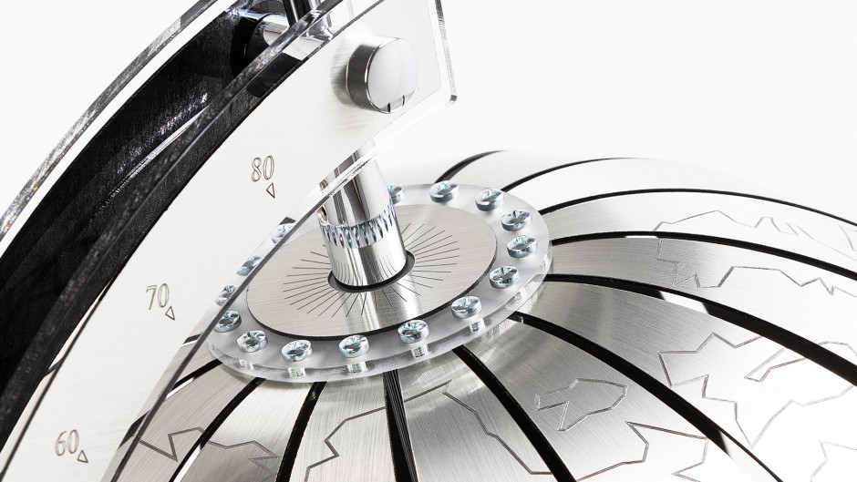 Nosník je vyroben z transparentního litého metakrylátu s vysokou hustotou a čistotou, kování je z chromované mosazi a základna je z lakované MDF desky.