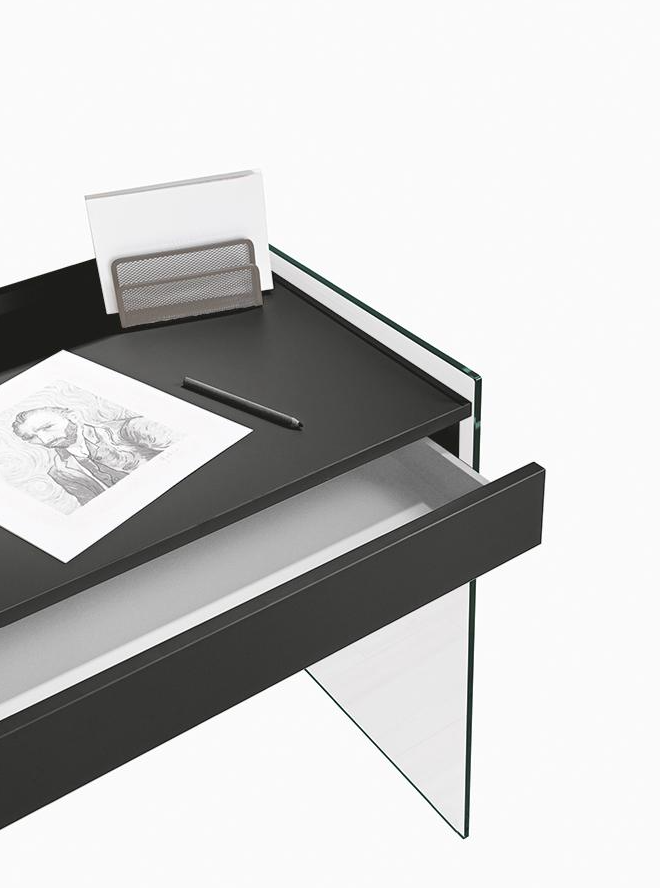 Moderní a funkční stůl s 10 mm silnou konstrukcí z tvrzeného skla, která dodává prostředí lehkost a průhlednost.