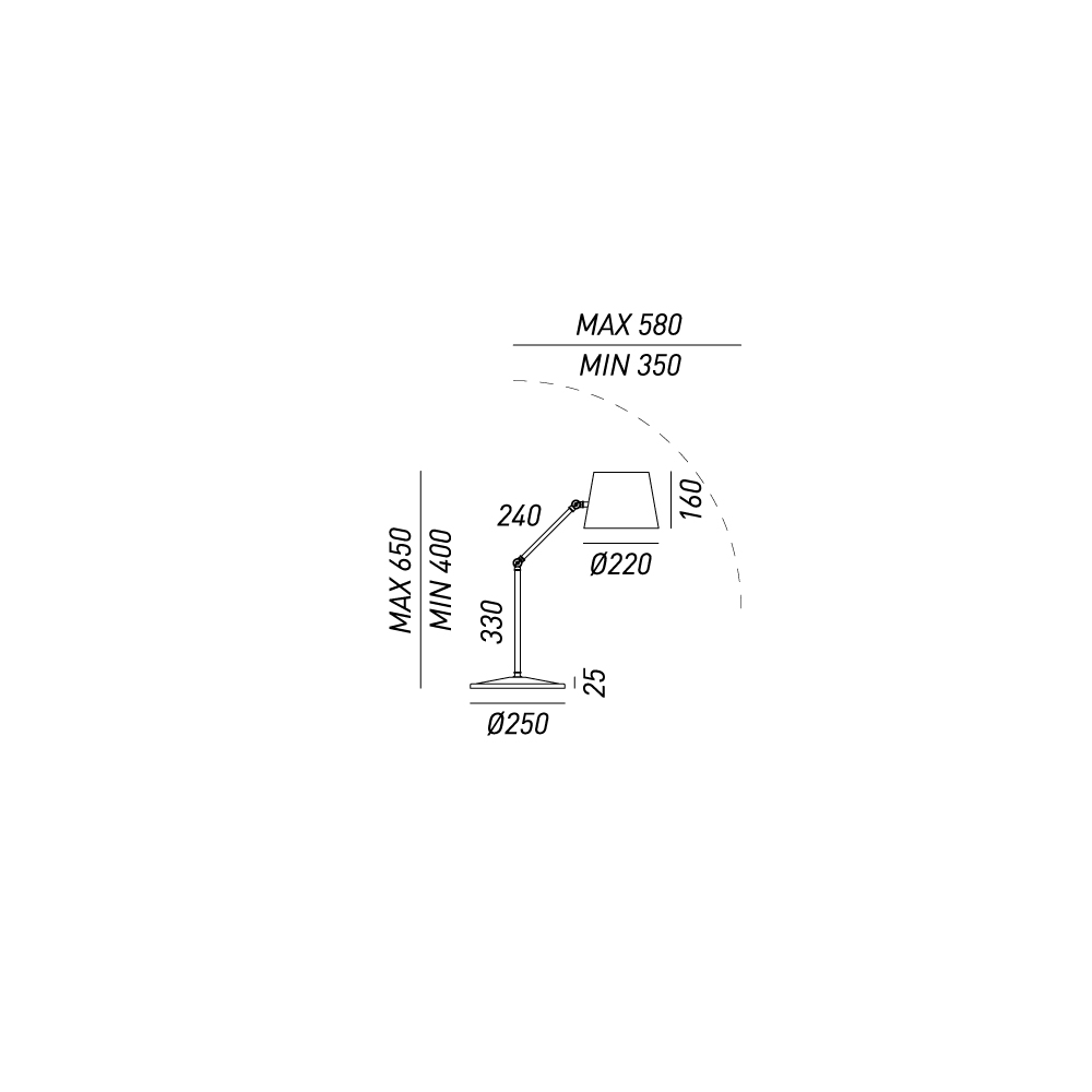 Difuzor: Ø220 mm x v.160 mm; max. výška světelného zdroje 650 mm; patice Ø250 mm