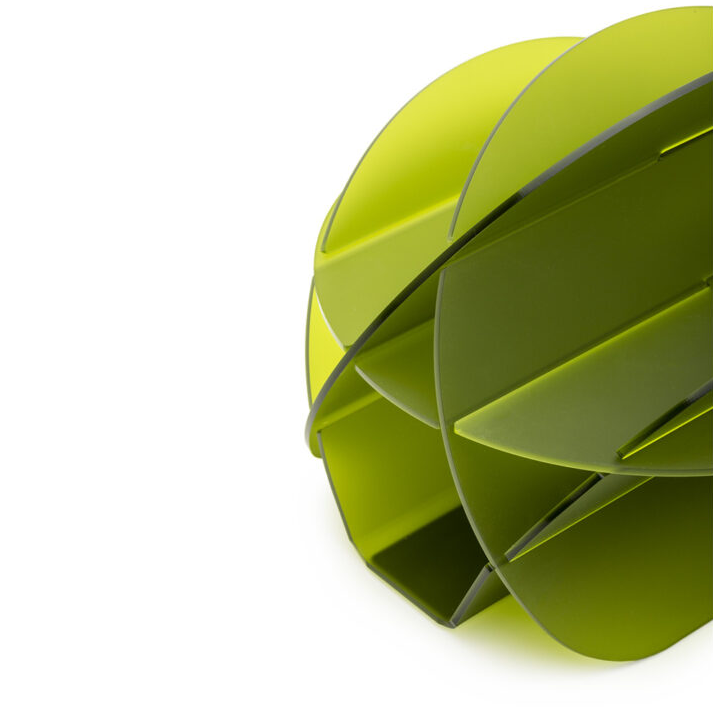 Světlo prochází kompozicí půlkruhů umístěných na různých rovinách a vytváří fascinující trojrozměrnou hru světla a stínu, schopnou proměnit prostředí nečekaným způsobem.