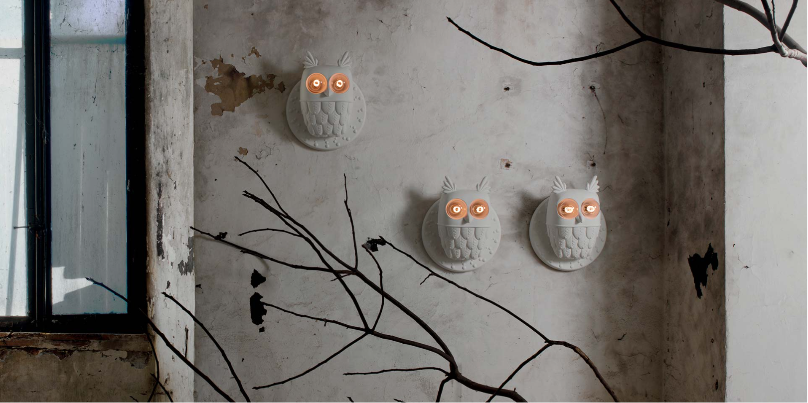 Ti-Vedo je nástěnná lampa vyrobená z keramiky s reliéfním tvarem roztomilé a hravé sovy, jejíž dvě žárovky představují ptačí oči nahlížející do tmy. Je ironické, že tato nástěnná lampa v souladu se stylem Karman zdobí stěnu neobvyklým způsobem, vytváří fantasy svět a rozptyluje měkké ambientní světlo. Je vybavena dvěma objímkami E27 a můžete použít dekorativní žárovky o výkonu 53 W (nejsou součástí balení), doporučujeme však používat LED žárovky s vláknem.