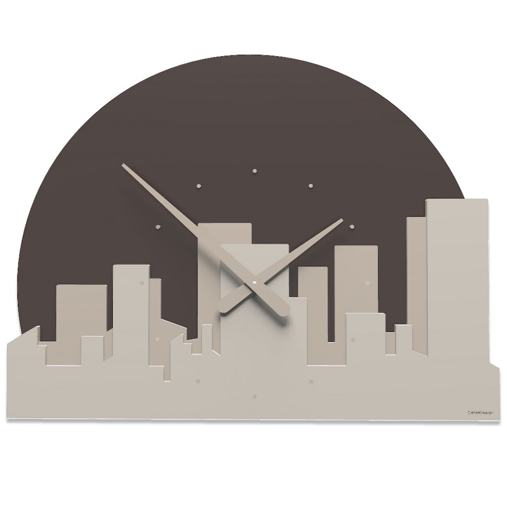 Stylizovaná silueta velkoměstského panoramatu, vyrobená z lakovaného dřevěného vlákna , činí tyto hodiny ideálními do moderních obývacích pokojů, pracoven nebo komerčních prostor. Každý detail je navržen a ručně vyroben v Itálii s pečlivou povrchovou úpravou a odolnými materiály.