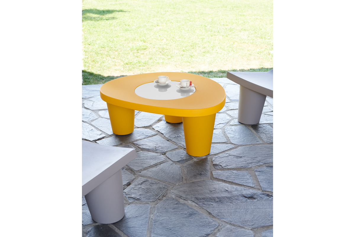 Konferenční stolek Low Lita od Paoly Navone doplňuje řadu stolků Low Lita z kolekce SLIDE. Organický tvar skleněné desky v kombinaci s hravými liniemi tří nohou dodává tomuto konferenčnímu stolku mladistvý a hravý design.