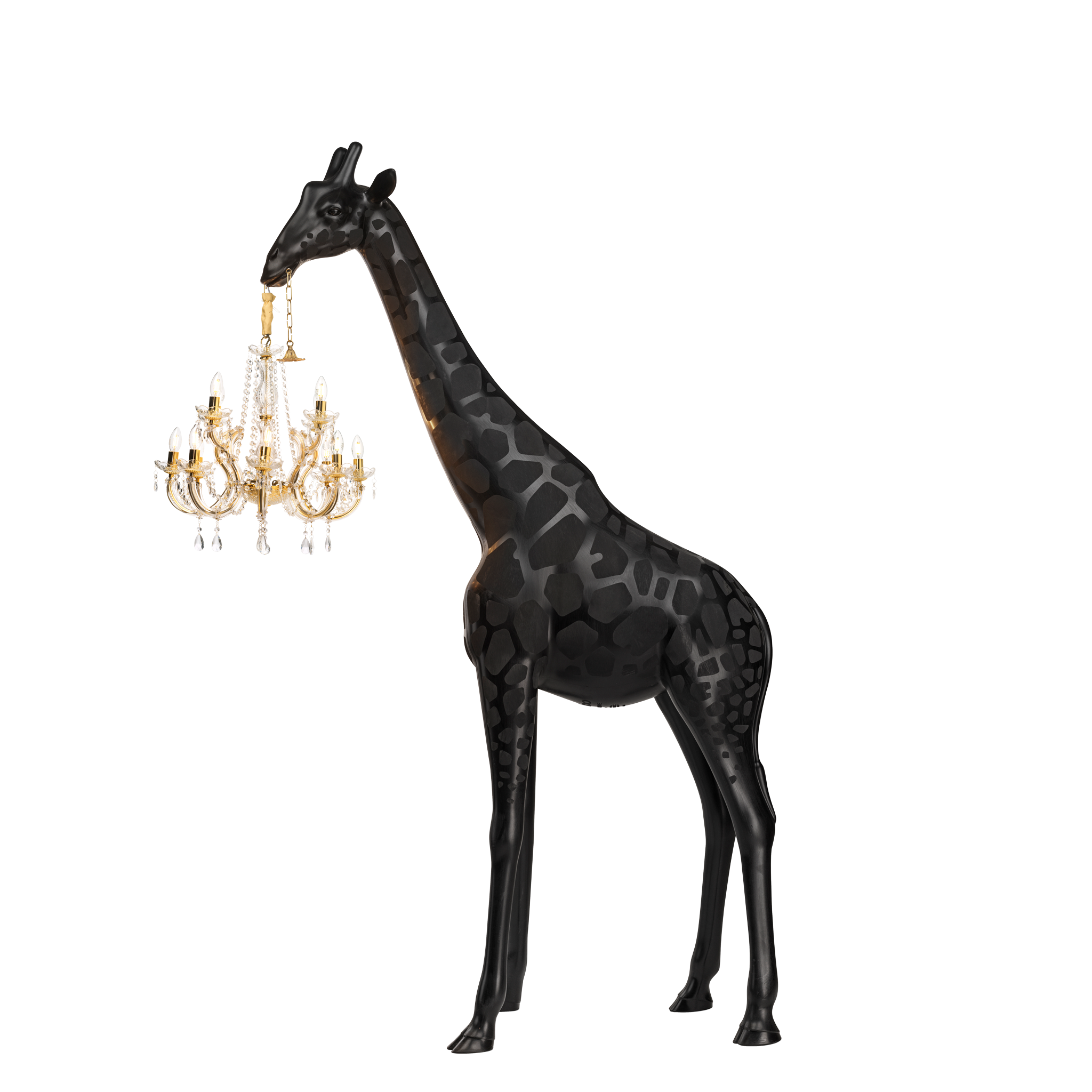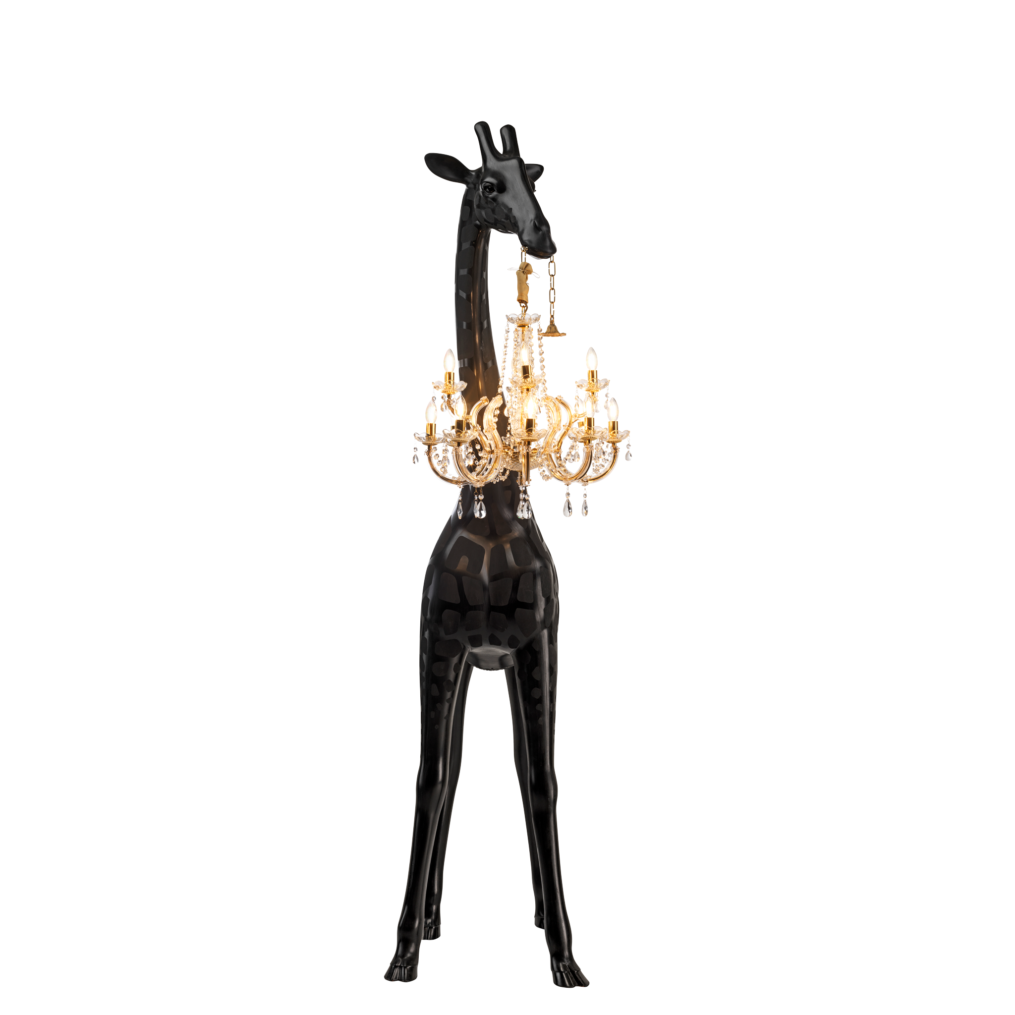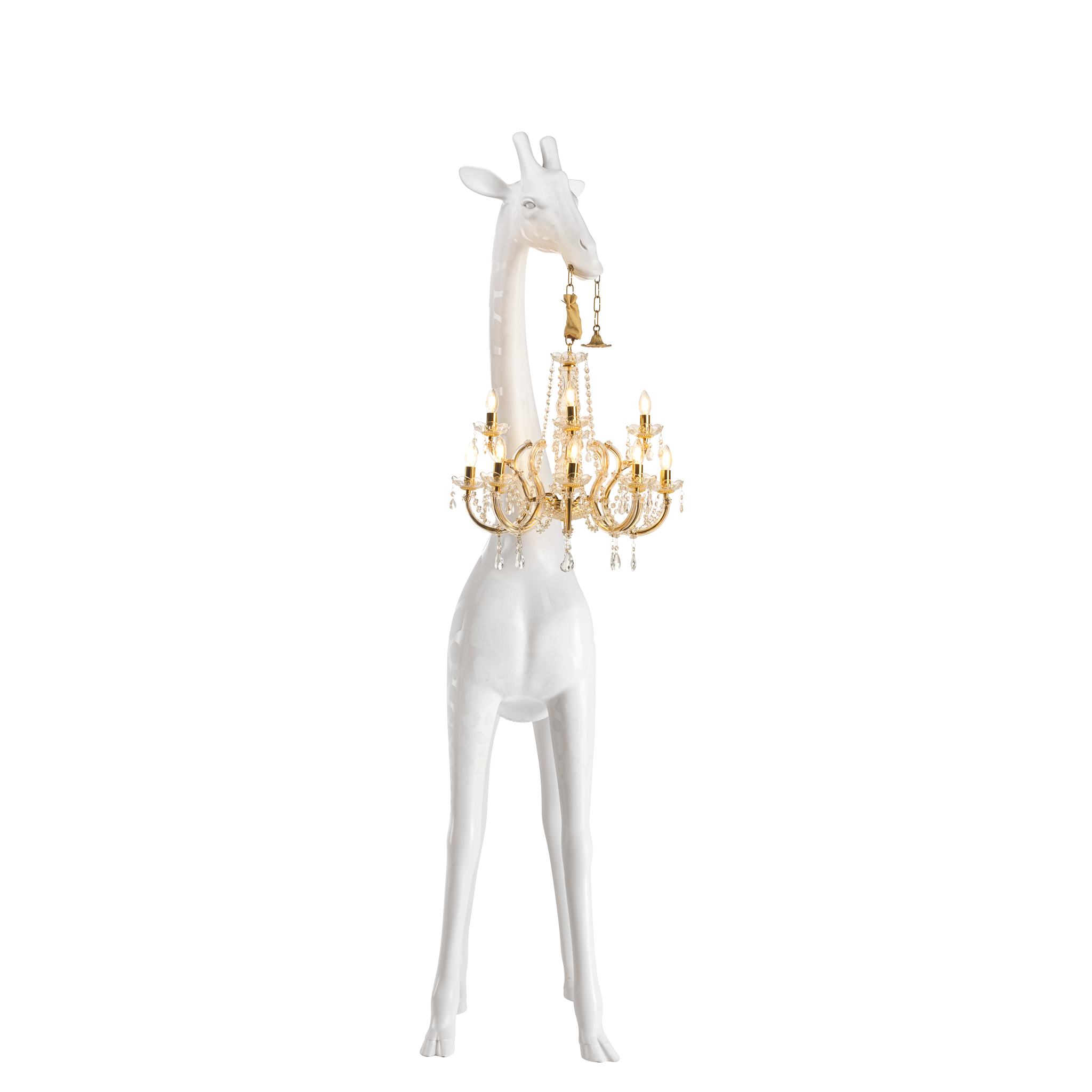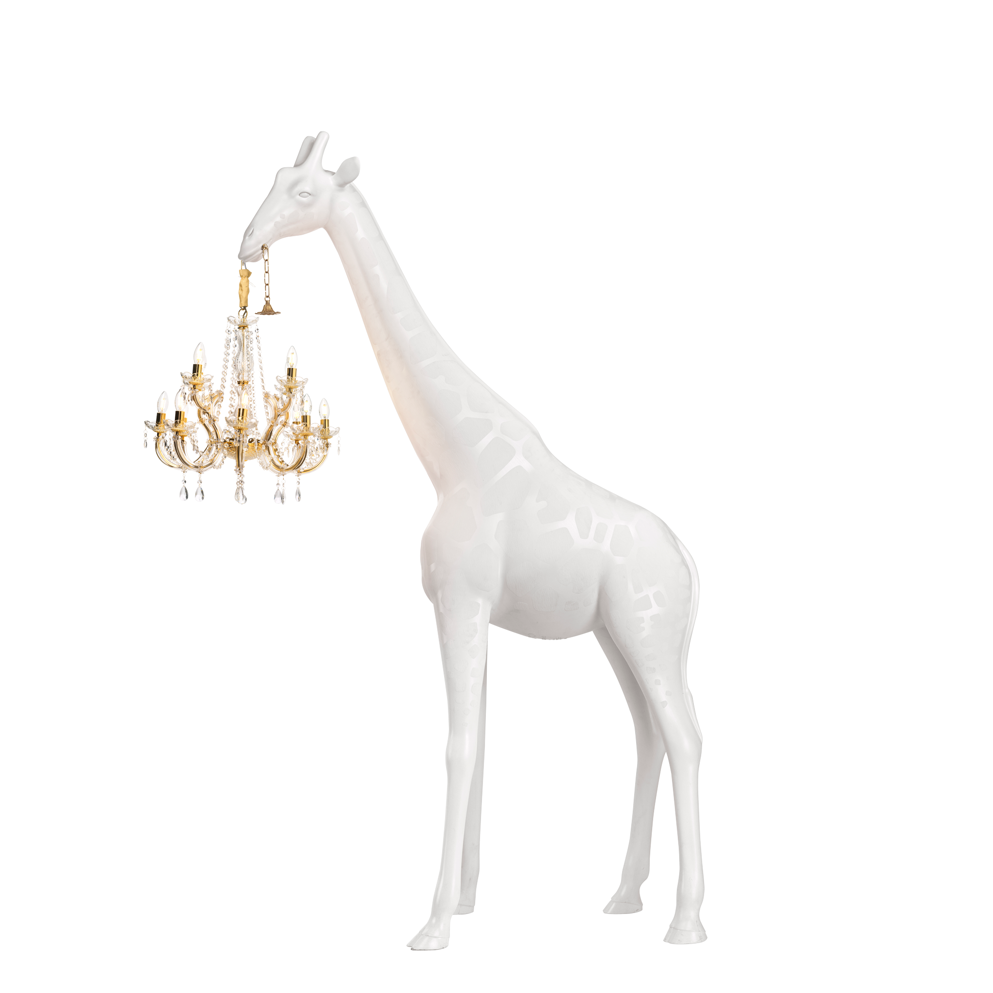 Svítidlo Giraffe in Love M, navržené Marcantoniem, je žirafa držící klasický lustr ve stylu Marie Terezie, vysoký 2,65 metru, což z něj činí ideální volbu pro jakýkoli domov. Je výrazné a elegantní a přirozeně se stane středem pozornosti v každém obývacím pokoji.