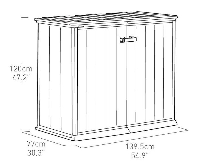 Je ideální pro uložení skládacích židlí, polštářů, zahradního nářadí, košů na tříděný odpad nebo venkovního vybavení.