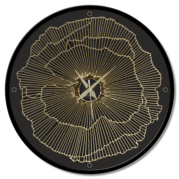 Kulatý panel z dřevěných vláken potažený čistým bavlněným plátnem s potiskem ve vysokém rozlišení a zarámovaný matným lakovaným kovovým rámem.