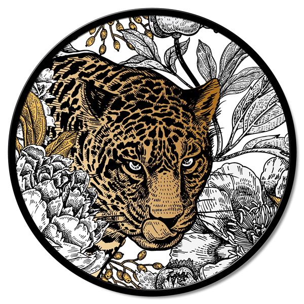 Kulatý panel z dřevěných vláken potažený čistým bavlněným plátnem s potiskem ve vysokém rozlišení a s matně lakovaným kovovým rámem.