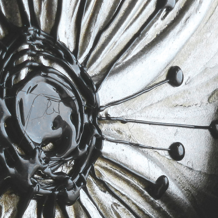 DESIGNOVÝ ŠTĚTEC cm 197x67 PLATINOVÁ varianta Květinová kompozice na plátně, ručně zdobená, pryskyřičné detaily na texturované, dvojitá L struktura s centrálním reliéfním prvkem, lesklá povrchová úprava