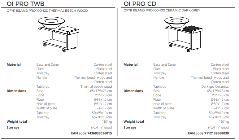 Rukojeť je vyrobena z teakového dřeva, proto je vhodné skladovat OFYR Island PRO uvnitř nebo pod střechou.