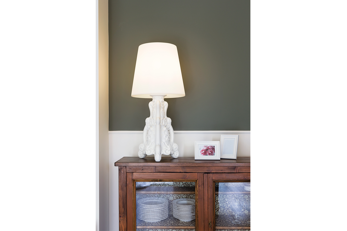 Stolní lampa Lady of Love je součástí kolekce Design of Love , kterou vytvořili designéři Graziano Moro a Renato Pigattim. Svým nezaměnitelným stylem Lady of Love kombinuje klasicismus a eleganci: evokuje emoce, okouzluje a přitahuje pozornost. Inspirována klasickou noční lampou, nabízí originální reinterpretaci velkého barokního klasika.