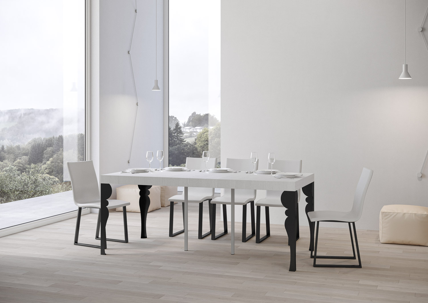 Rozkládací konzolový stolek Paxon Premium je všestranný a robustní, takže se perfektně hodí do jakékoli místnosti v domácnosti: do vstupní haly, kuchyně, jídelny, obývacího pokoje nebo chodby. Rozkládací konzolový stolek Paxon Premium lze snadno přeměnit na velký jídelní stůl o délce až 300 cm s kapacitou 14 osob. Rozkládací systém je vyroben z melaminových panelů a železných nohou a disponuje teleskopickými hliníkovými výsuvy a středovou podpěrou, díky čemuž je konzolový stolek stabilní a robustní. Po složení konzolového stolku je nutné prodloužení uskladnit. Produkt Itamoby, vyrobeno v Itálii. Rozměry: Složená konzolová deska: Š 90 H 40 V 77 cm. Délka s 1 prodloužením: 92 cm. Délka se 2 prodlouženími: 144 cm. Délka se 3 prodlouženími: 196 cm. Délka se 4 prodlouženími: 248 cm. Délka s 5 prodlouženími: 300 cm.
