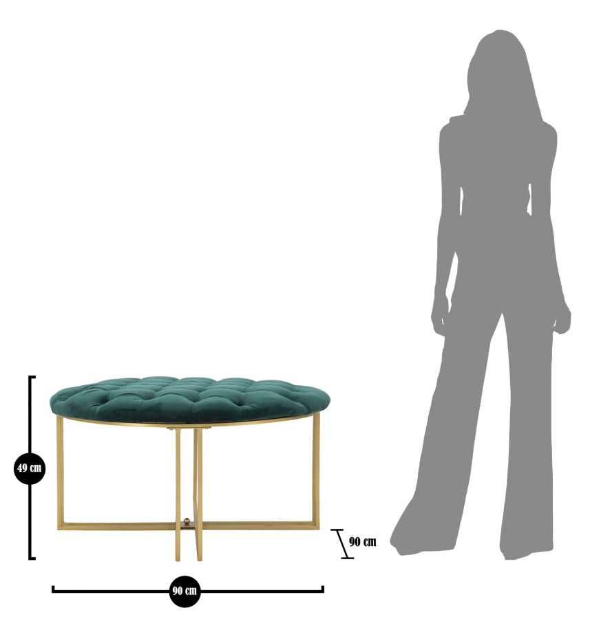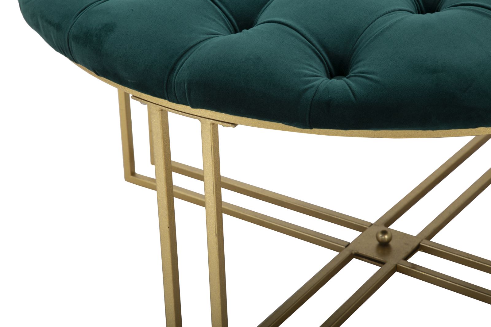 Taburetka se zlatým kovovým rámem a polstrovaným a prošívaným sedákem ze syntetického sametu. Jednoduchý, lineární design dodá každému prostoru nádech elegance.