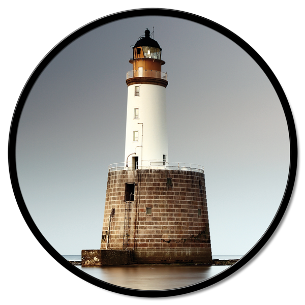 Kulatý panel z dřevěných vláken potažený čistým bavlněným plátnem s potiskem ve vysokém rozlišení a s matně lakovaným kovovým rámem.