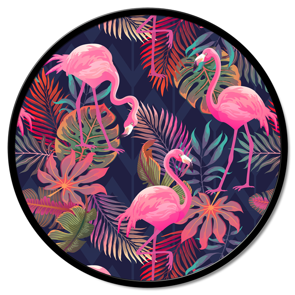 Kulatý panel z dřevěných vláken potažený čistým bavlněným plátnem s potiskem ve vysokém rozlišení a s matně lakovaným kovovým rámem.