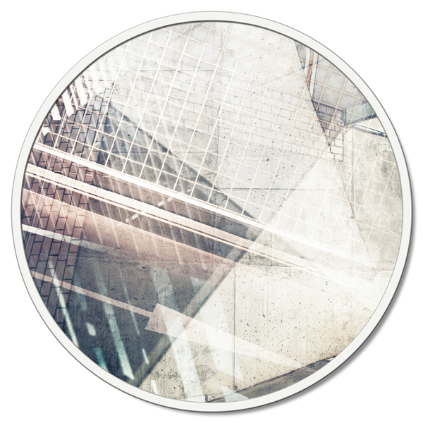 Kulatý panel z dřevěných vláken potažený čistým bavlněným plátnem s potiskem ve vysokém rozlišení a s matně lakovaným kovovým rámem.