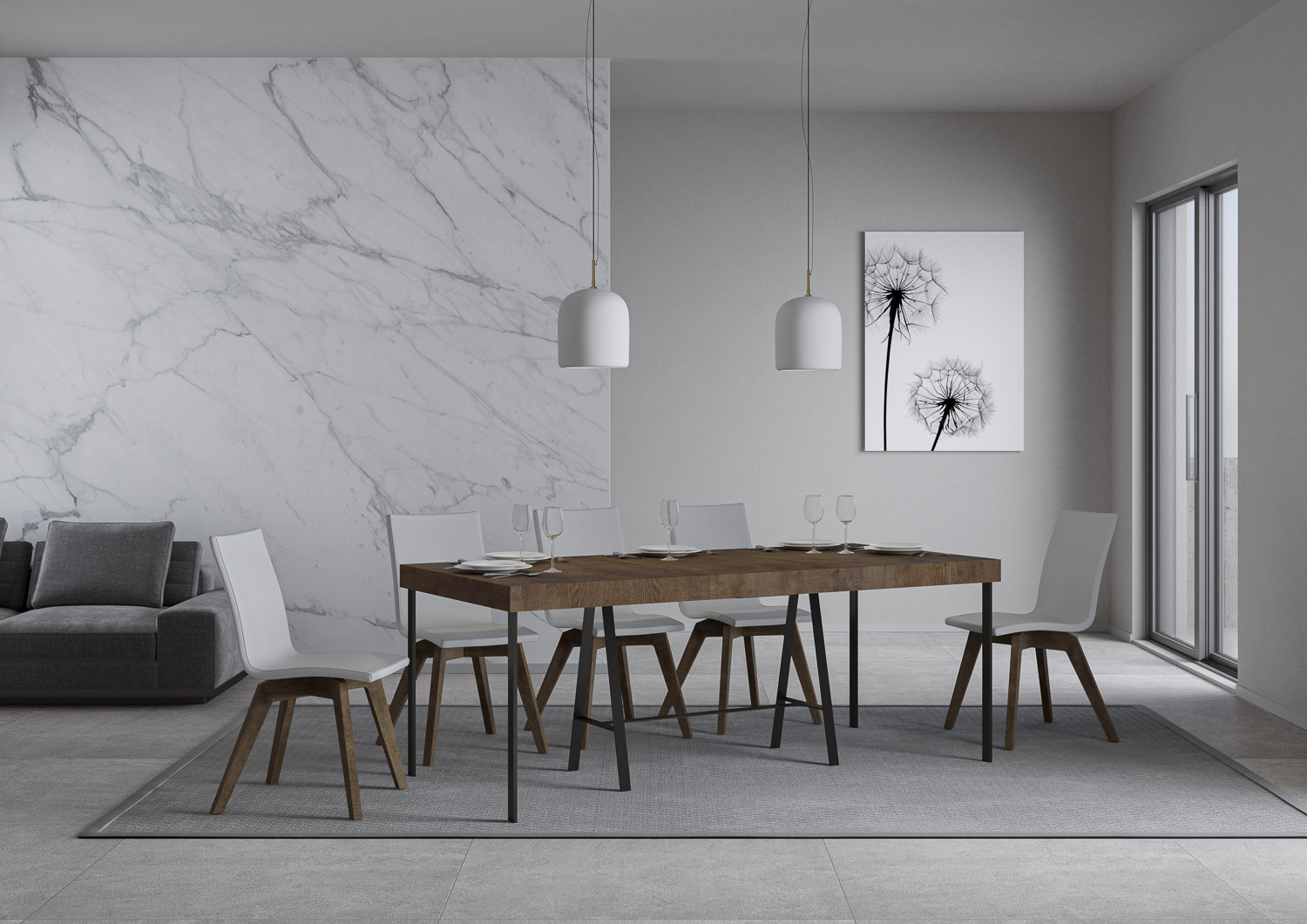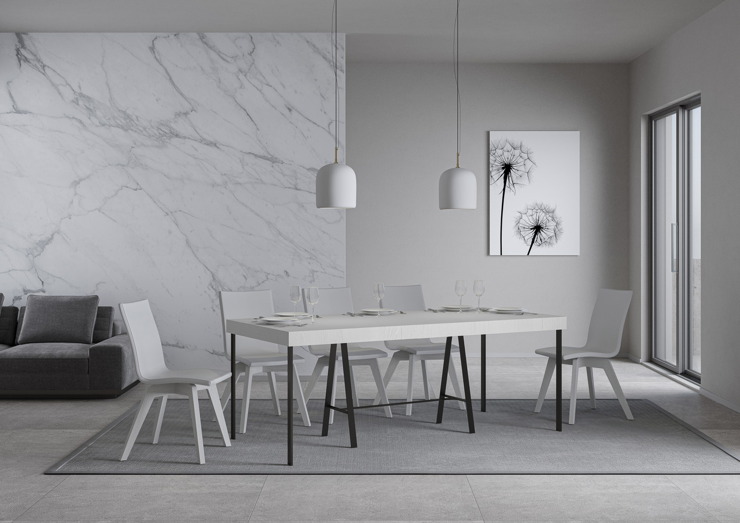 Rozkládací konzolový stolek Banco Premium Small je všestranný a robustní, takže se perfektně hodí do každé místnosti v domácnosti: do vstupní haly, kuchyně, jídelny, obývacího pokoje nebo chodby. Rozkládací konzolový stolek Banco Premium Small lze snadno přeměnit na velký jídelní stůl o délce až 196 cm s kapacitou 10 osob. Je vyroben z melaminových panelů a má železné nohy. Výsuvný systém s teleskopickými hliníkovými výsuvy a dodané boční podpěry činí konzolový stolek stabilním a robustním. Po složení konzolového stolku je nutné výsuvy uskladnit. Produkt Itamoby Vyrobeno v Itálii Rozměry: Složená konzolová deska: Š 90 H 40 V 77 cm Délka s 1 výsuvem: 92 cm Délka se 2 výsuvy: 144 cm Délka se 3 výsuvy: 196 cm