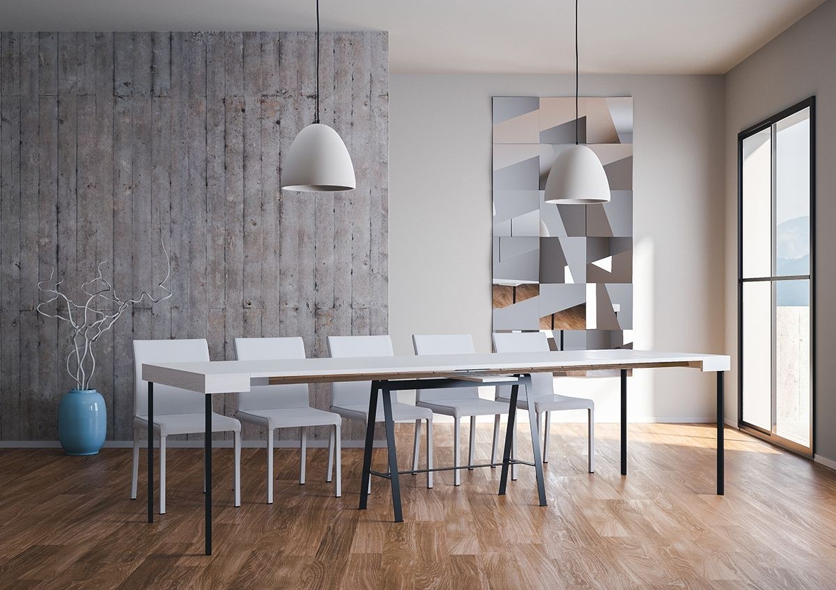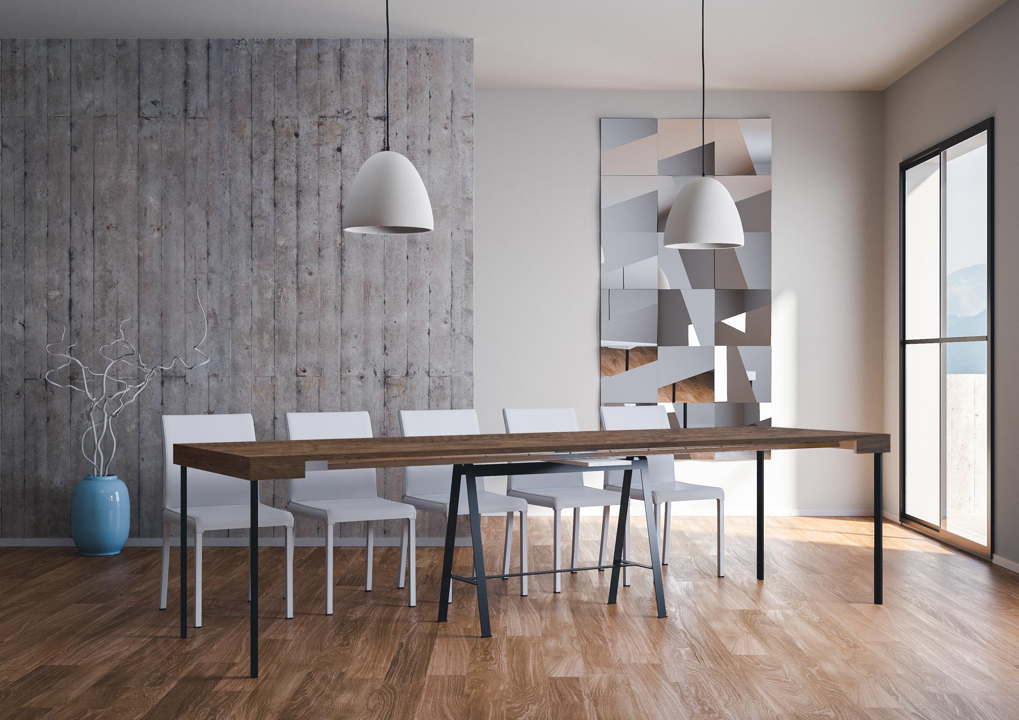 Rozkládací konzolový stolek Banco je všestranný a robustní, takže se perfektně hodí do jakékoli místnosti v domácnosti: do vstupní haly, kuchyně, jídelny, obývacího pokoje nebo chodby. Rozkládací konzolový stolek Banco lze snadno přeměnit na velký jídelní stůl o délce až 300 cm s kapacitou 14 osob. Je vyroben z melaminových panelů a má železné nohy. Výsuvný systém s teleskopickými hliníkovými výsuvy a dodané boční podpěry činí konzolový stolek stabilním a robustním. Po složení konzolového stolku je nutné výsuvy uskladnit. Produkt Itamoby, vyrobeno v Itálii. Rozměry: Složená konzolová deska: Š 90 H 40 V 77 cm. Délka s 1 výsuvem: 92 cm. Délka se 2 výsuvy: 144 cm. Délka se 3 výsuvy: 196 cm. Délka se 4 výsuvy: 248 cm. Délka s 5 výsuvy: 300 cm.