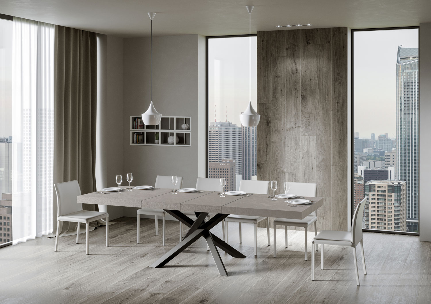 Rozkládací stůl Volantis Premium o délce 180 cm se svým sofistikovaným moderním designem se přizpůsobí jakémukoli interiéru a je ideální volbou jak jako jídelní stůl, tak i jako kus nábytku do obývacího pokoje, kde můžete stylově přivítat hosty. Rozkládací stůl Volantis Premium lze postupně rozložit až na 284 cm, což pojme 12 osob. Je vyroben z melaminových panelů, železných nohou a skládací vrchní desky a prodlužovacích desek. Prodlužovací systém s hliníkovými teleskopickými vodítky činí stůl stabilním a robustním i v plném rozložení, bez nutnosti dalších podpěr. Pokud se prodlužovací desky nepoužívají, nevejdou se do rámu stolu a musí být proto uloženy jinde. Produkt Itamoby Vyrobeno v Itálii Rozměry: Složený stůl: Š 180 H 90 V 77 cm Délka s 1 prodlužovacím prvkem: 232 cm Délka se 2 prodlužovacími prvky: 284 cm