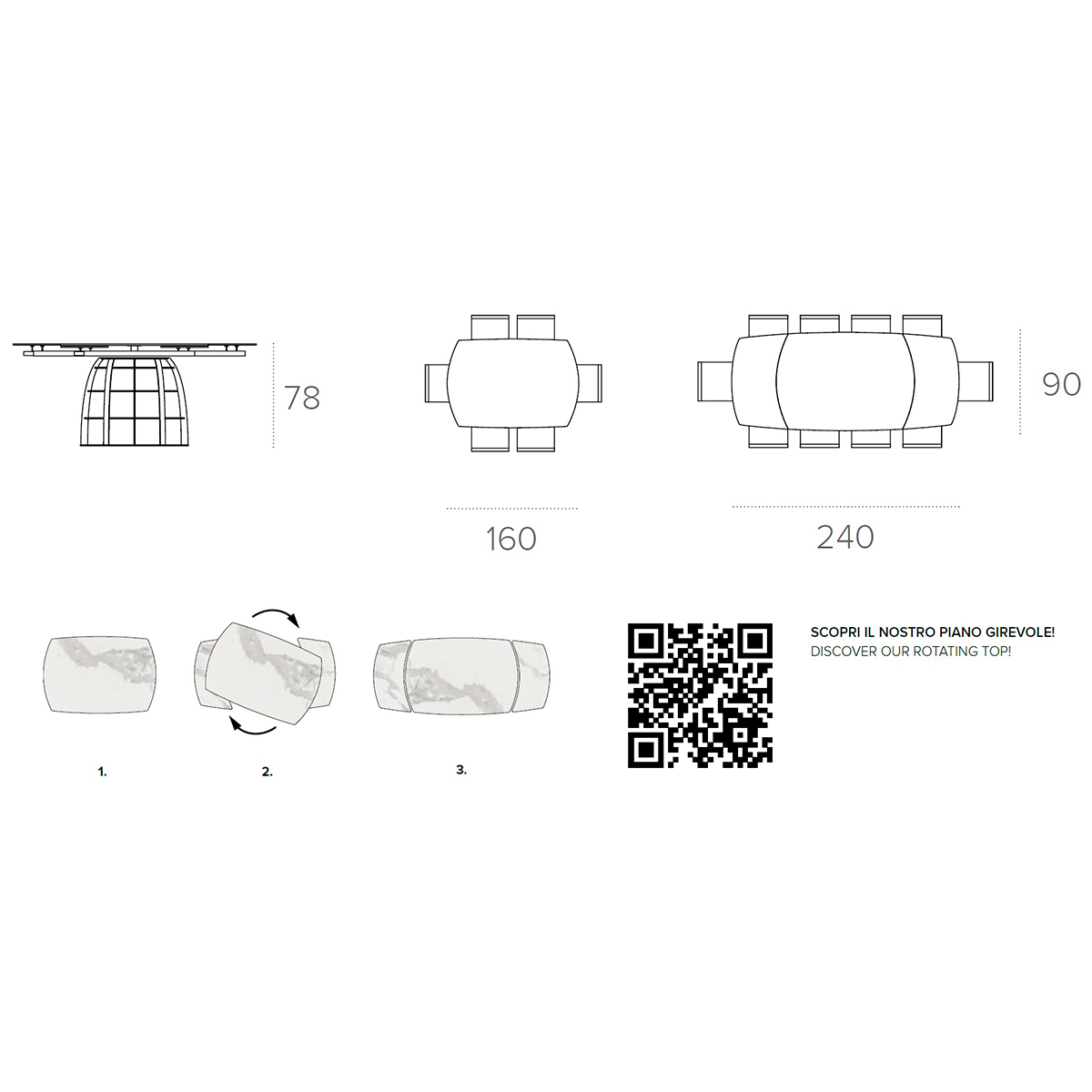 D 160 / 240 x H 90 x V 78 cm