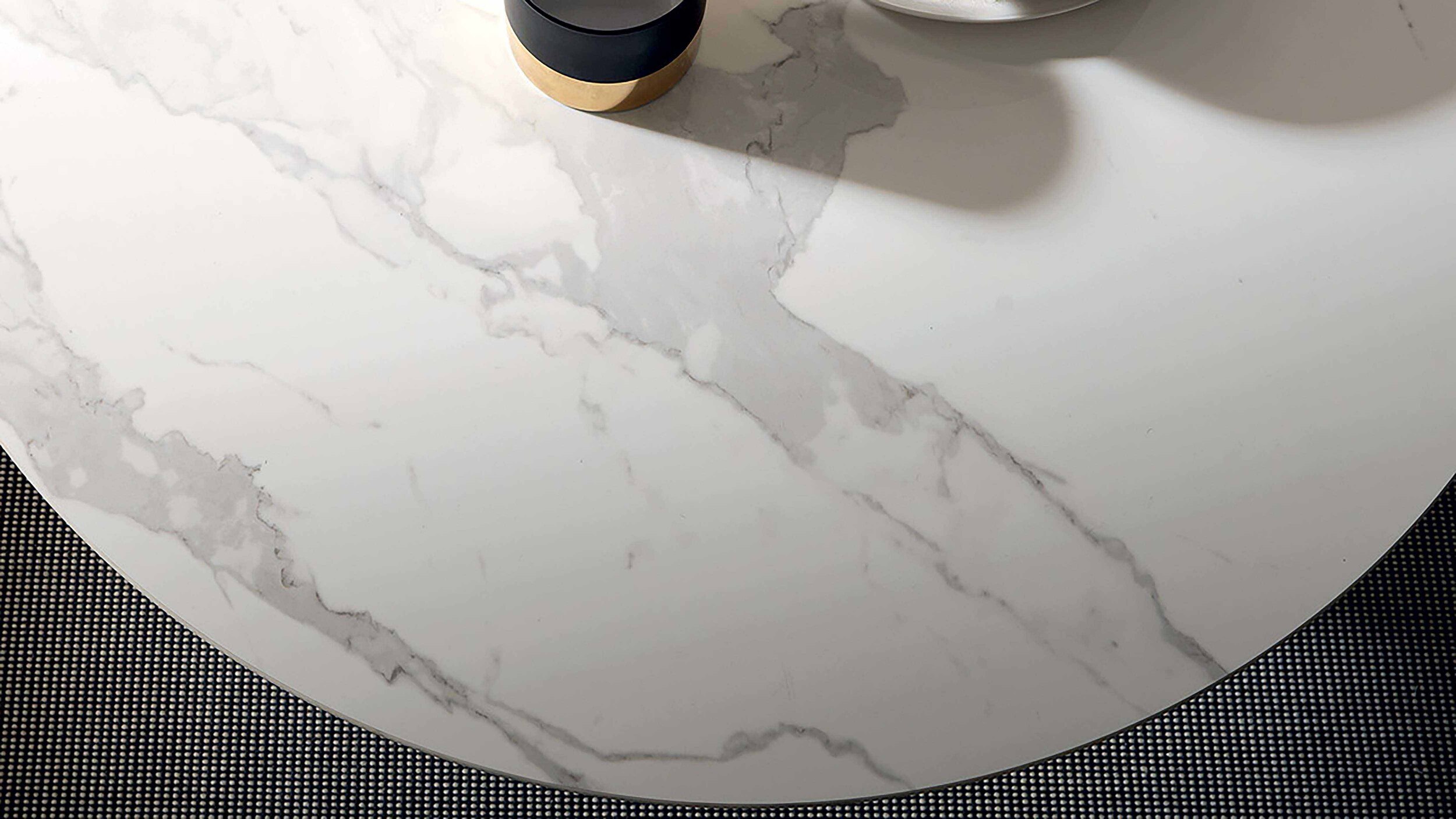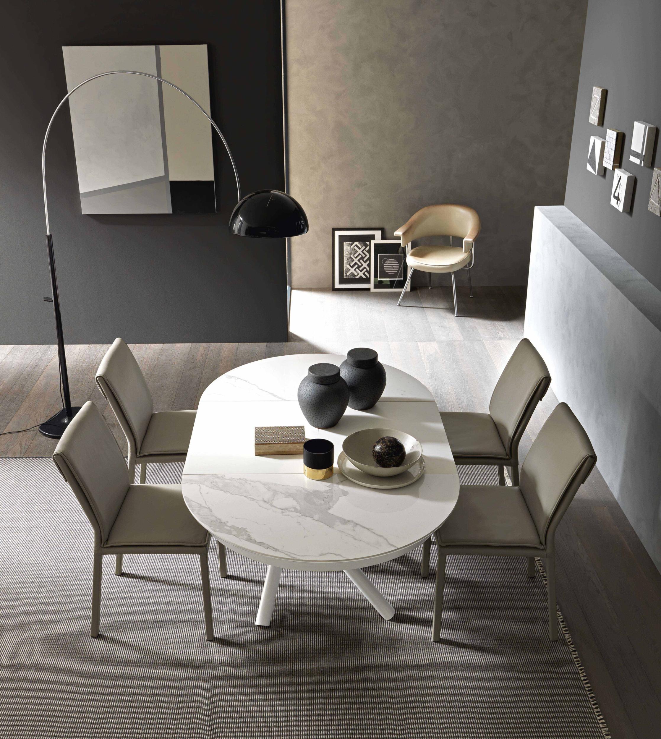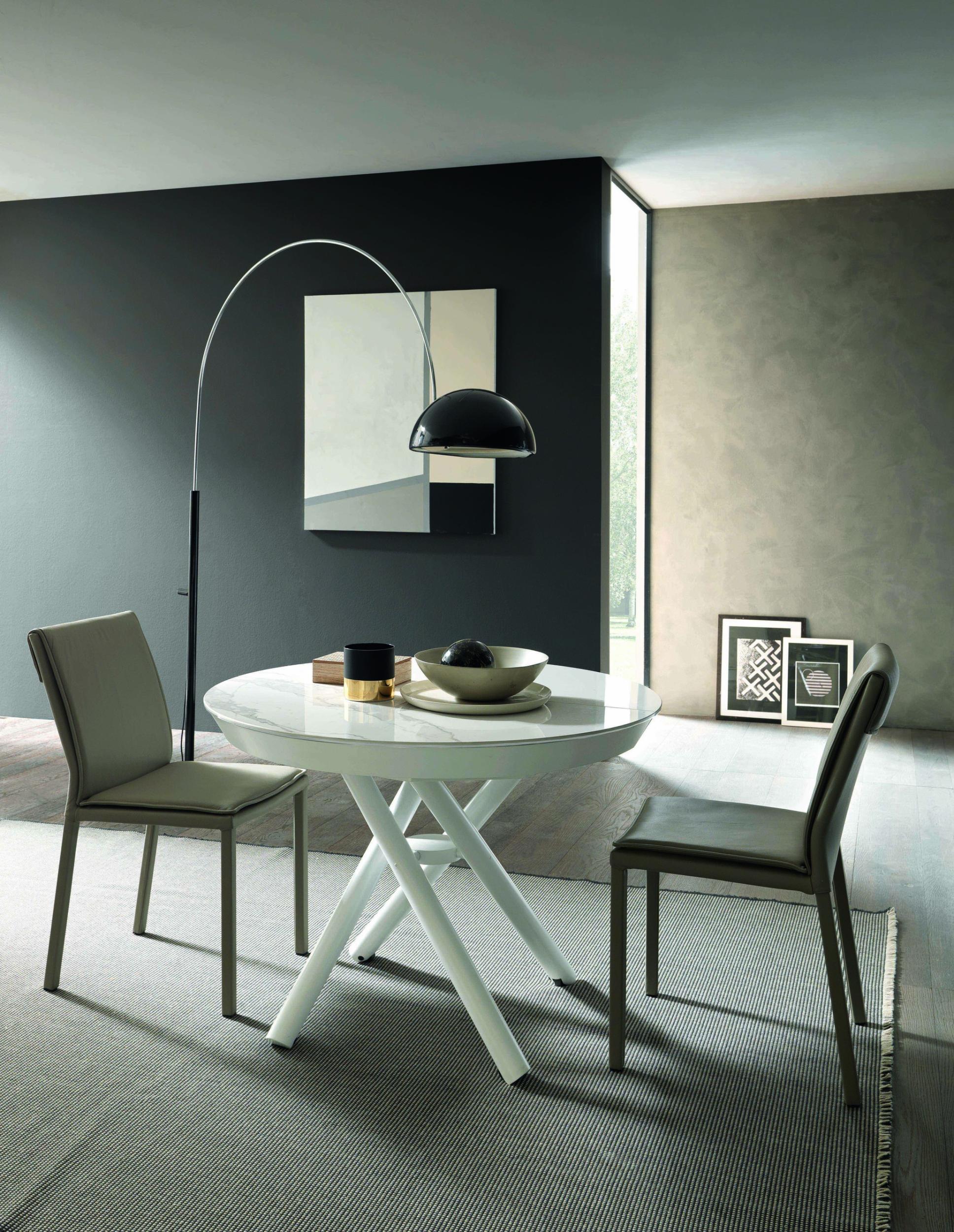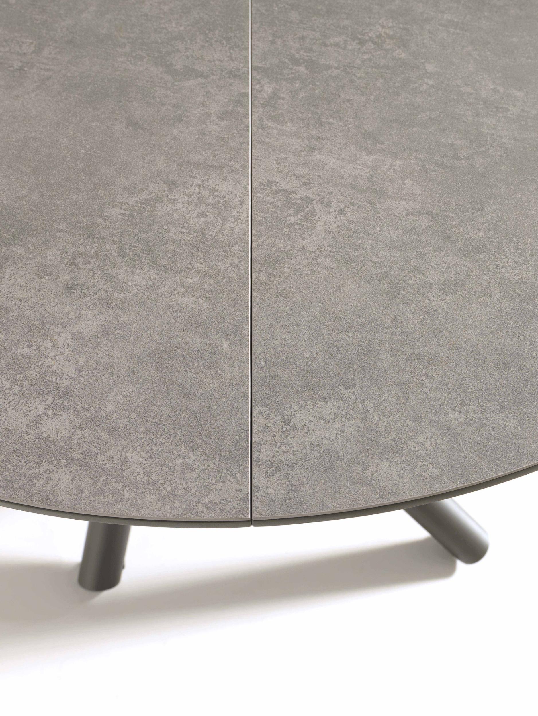 Kulatá deska z melaminu, dřeva, skla, maltového efektu a keramiky, vnitřní skládací výsuv, ideální do každého prostředí.